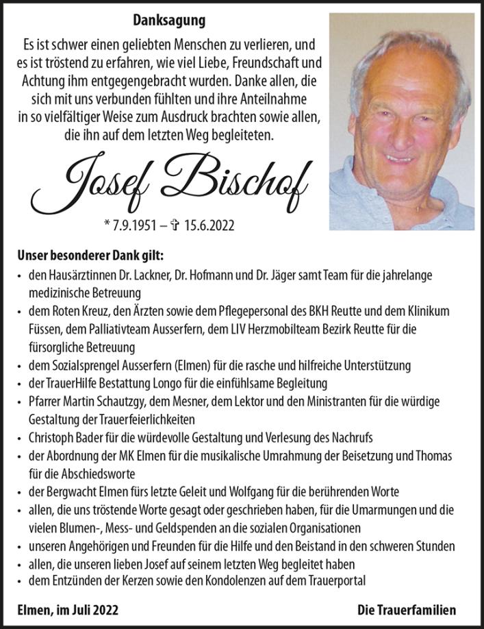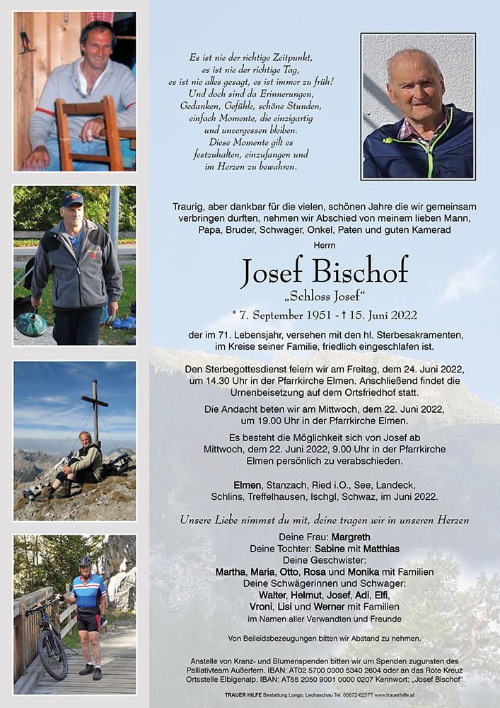 Kondolenzbuch für Josef Bischof