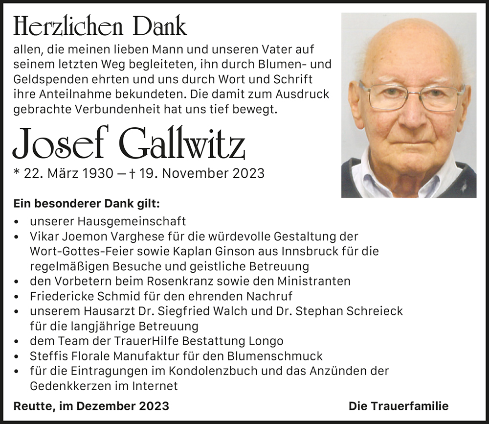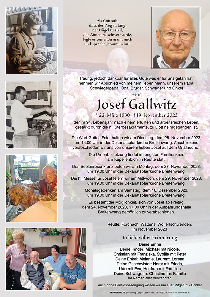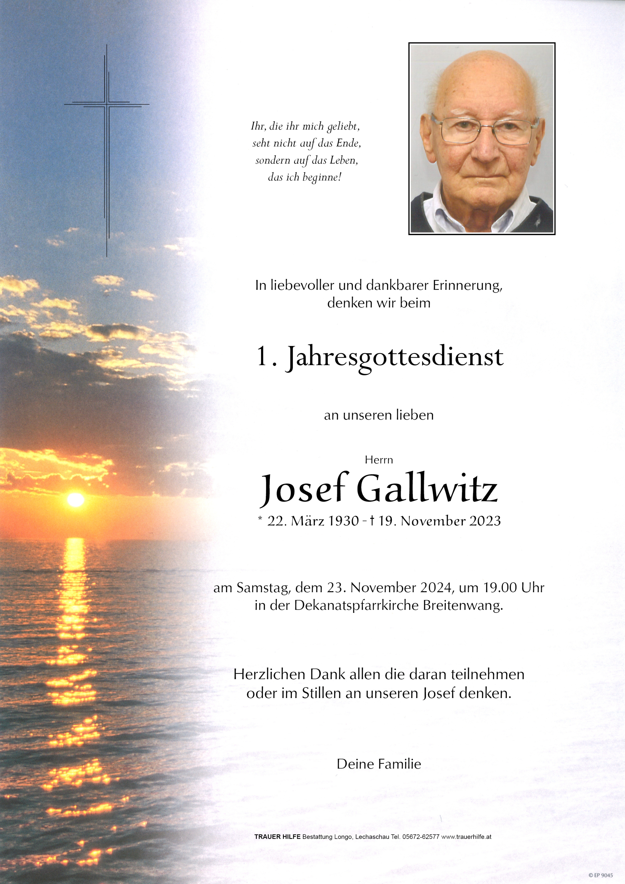 Josef Gallwitz war ein guter Freund und Alterskollege meines Vaters, vor allem als er damals Linz wirkte ... RIP