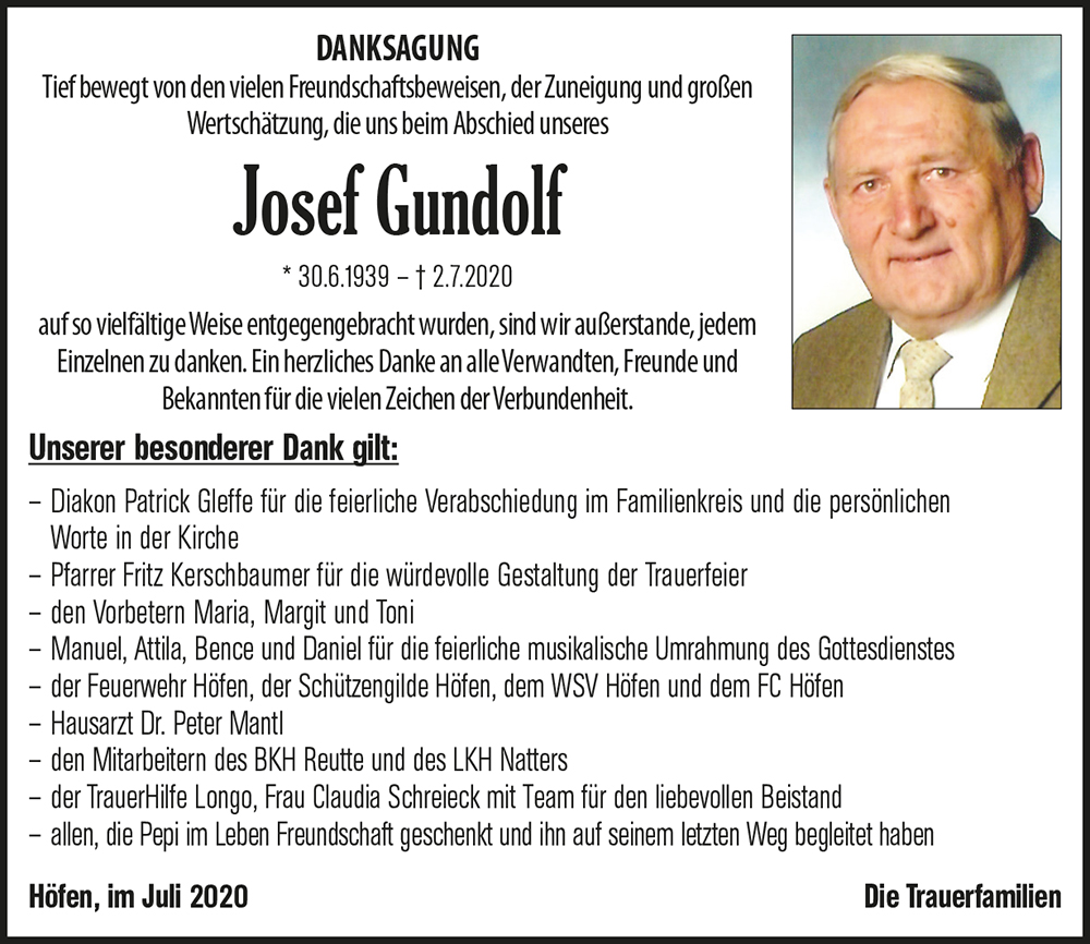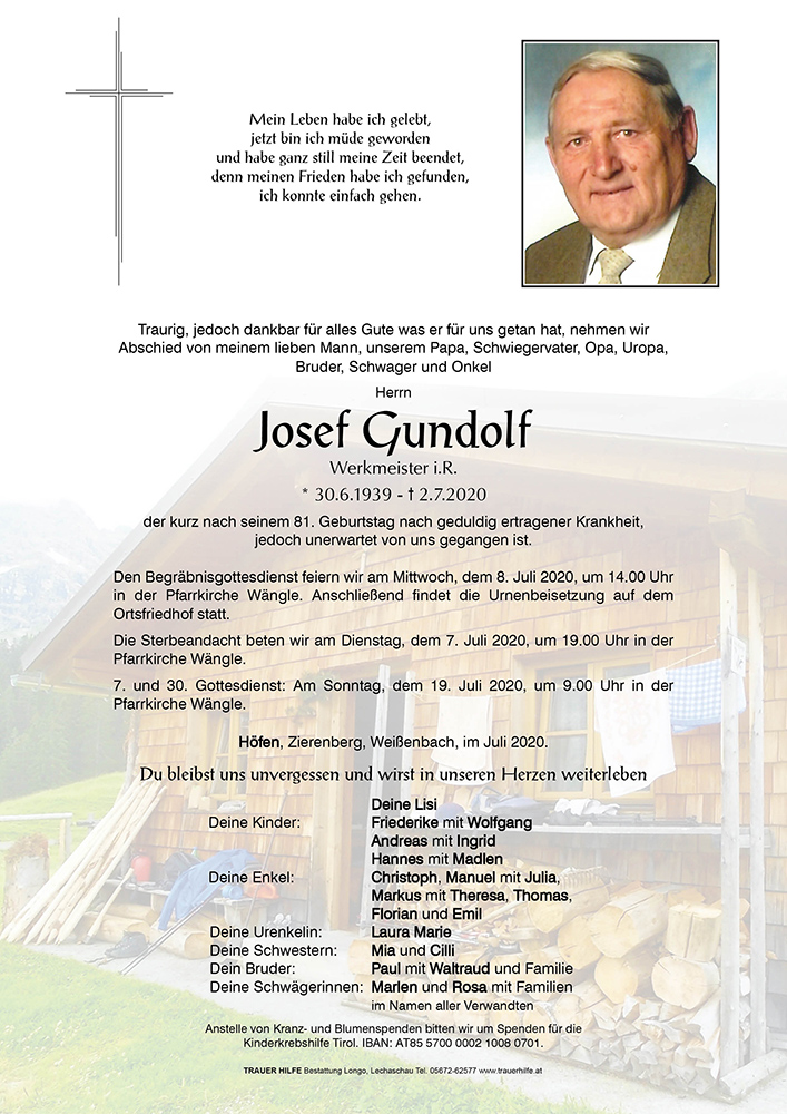 einen Vater zu Grabe zu tragen ist sehr schwer und die Trauer ist zurecht groß. Pepi war ein geselliger Mensch, lachte viel und gerne und war ein Mann mit dem man gerne diskutierte. Unsere gemeinsamen Feuerwehrausflüge, bei denen er immer dabei war, möchte ich nicht missen.