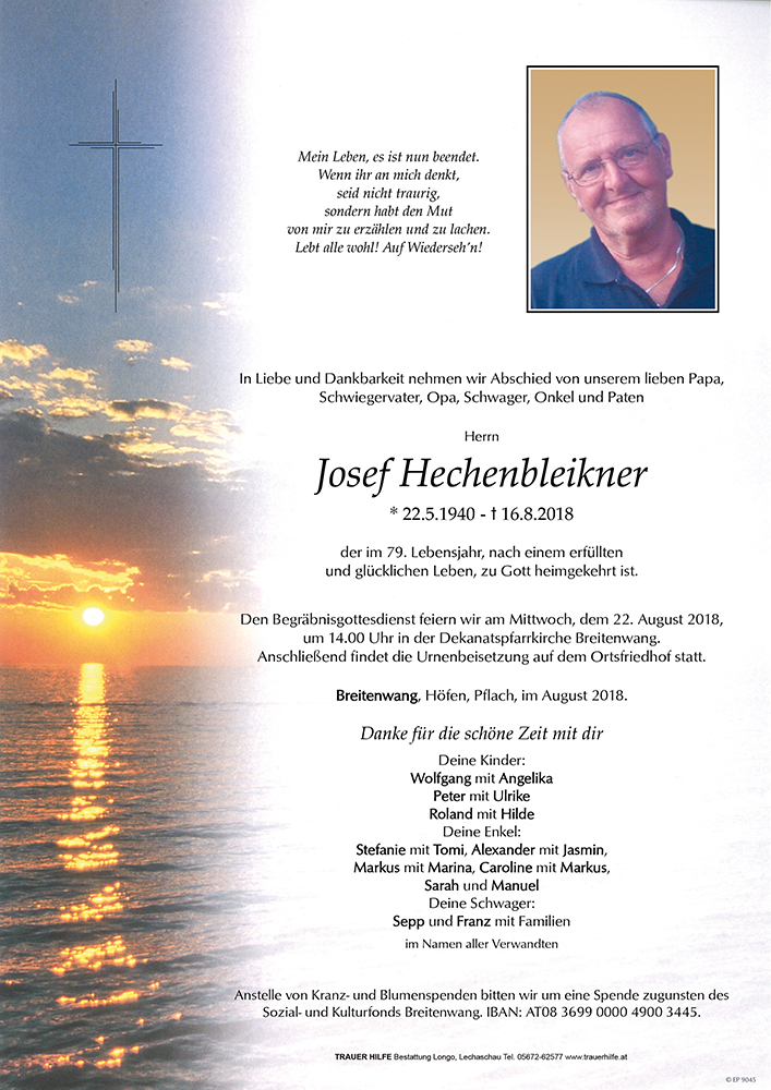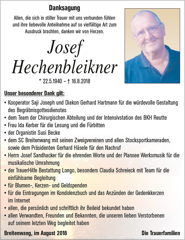 Kondolenzbuch für Josef Hechenbleikner