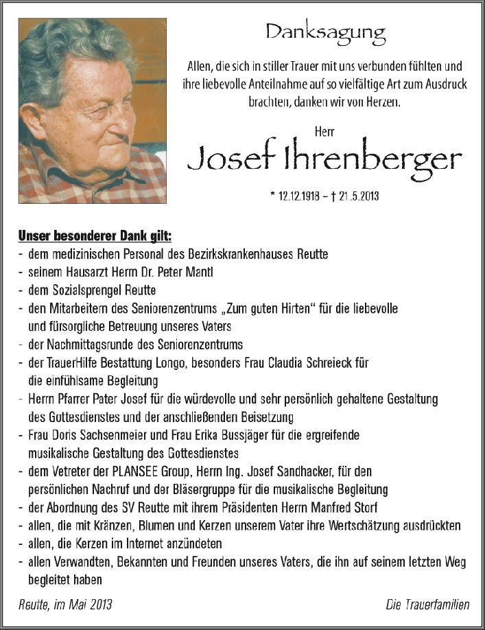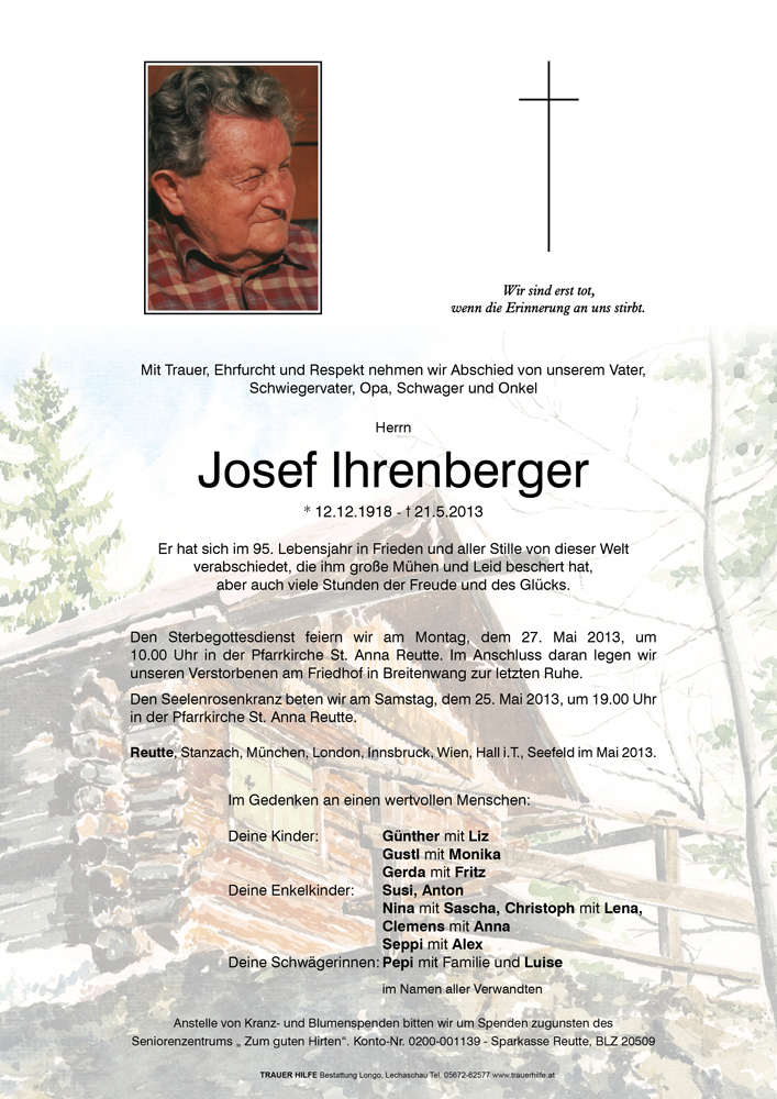 Kondolenzbuch für Josef Ihrenberger