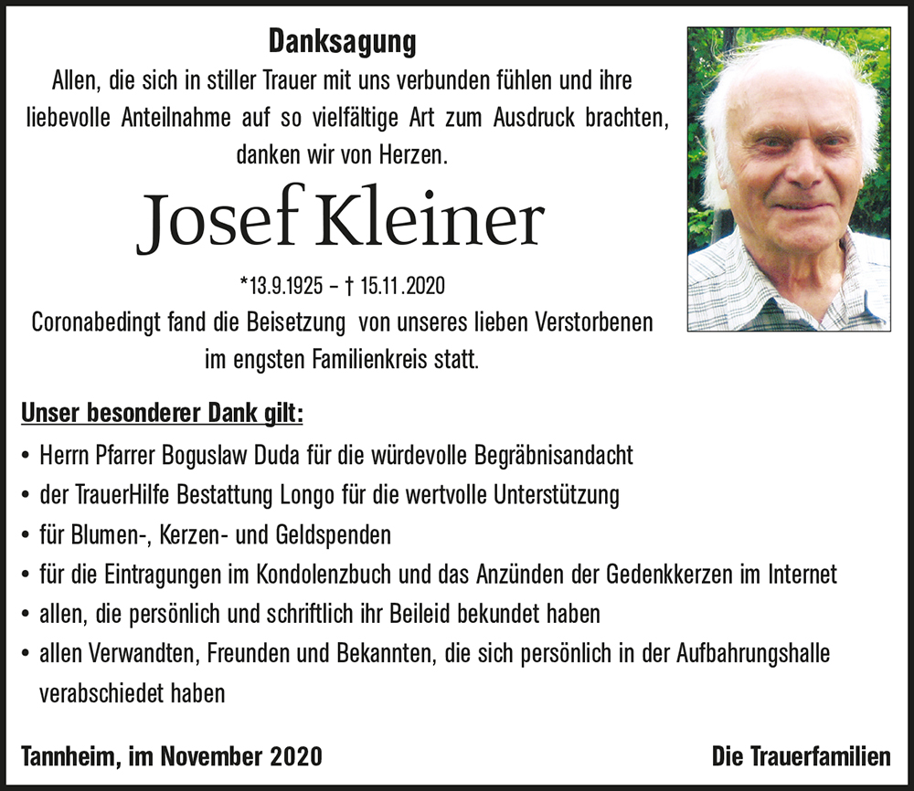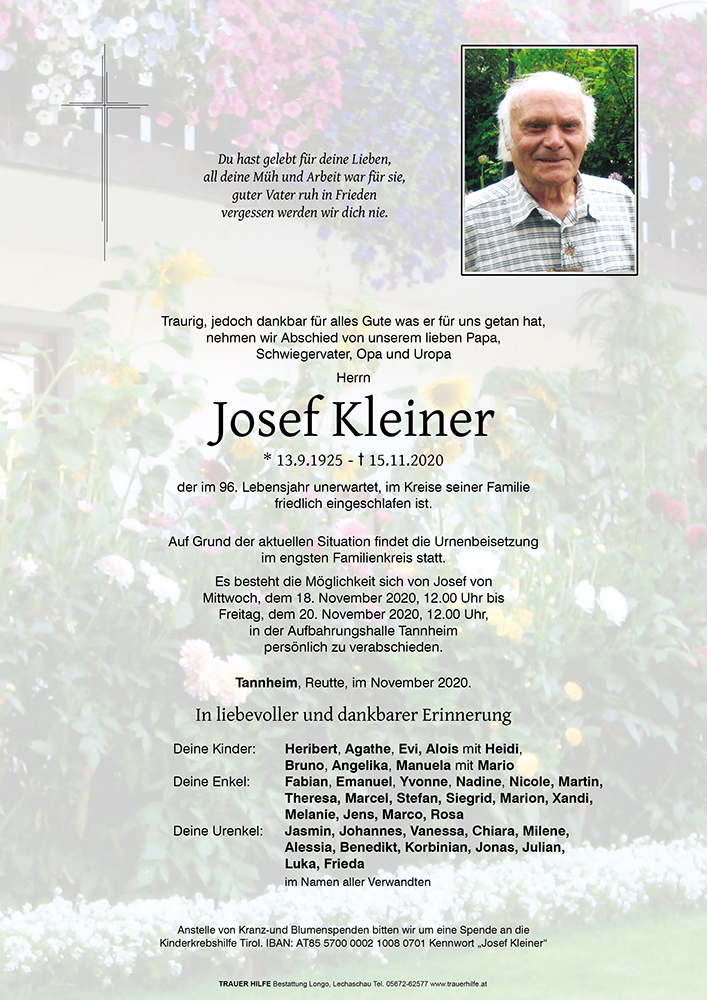 Kondolenzbuch für Josef Kleiner