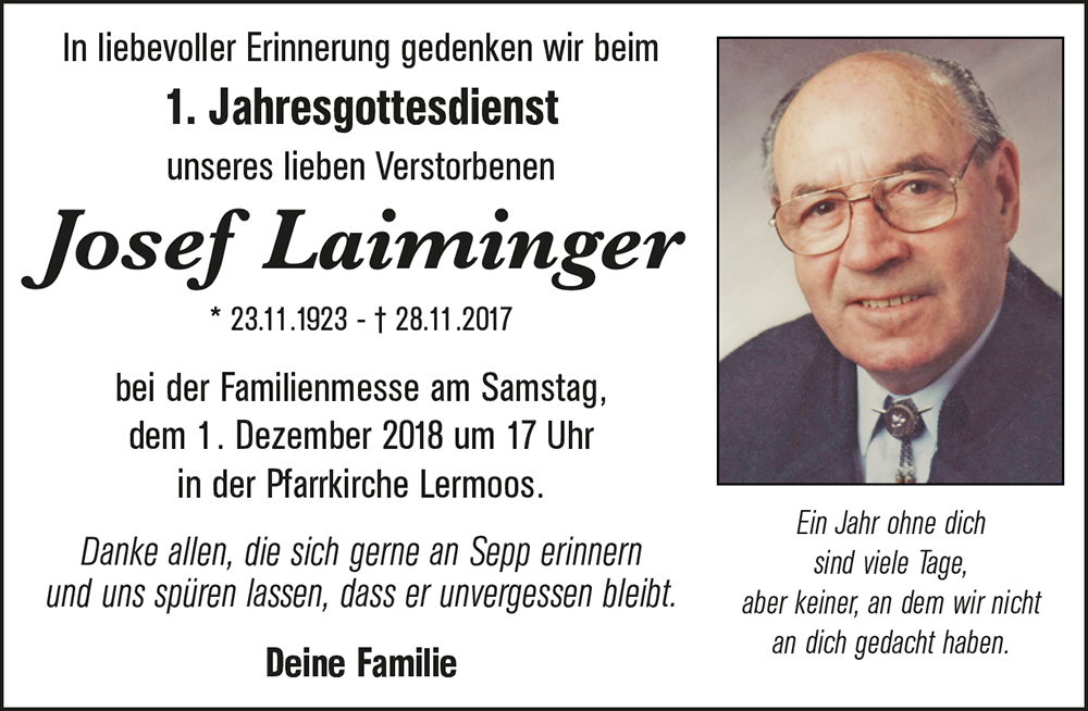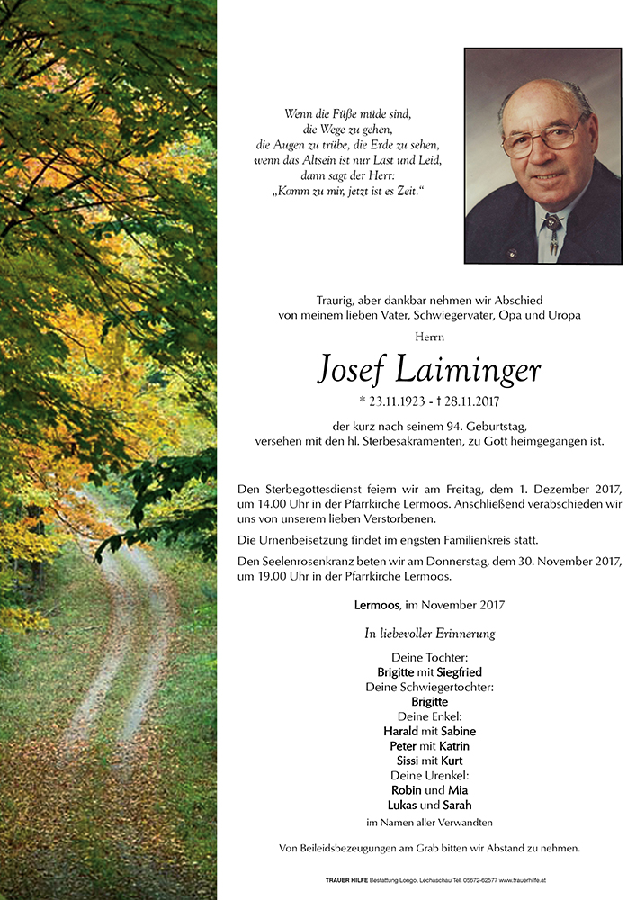 Kondolenzbuch für Josef Laiminger