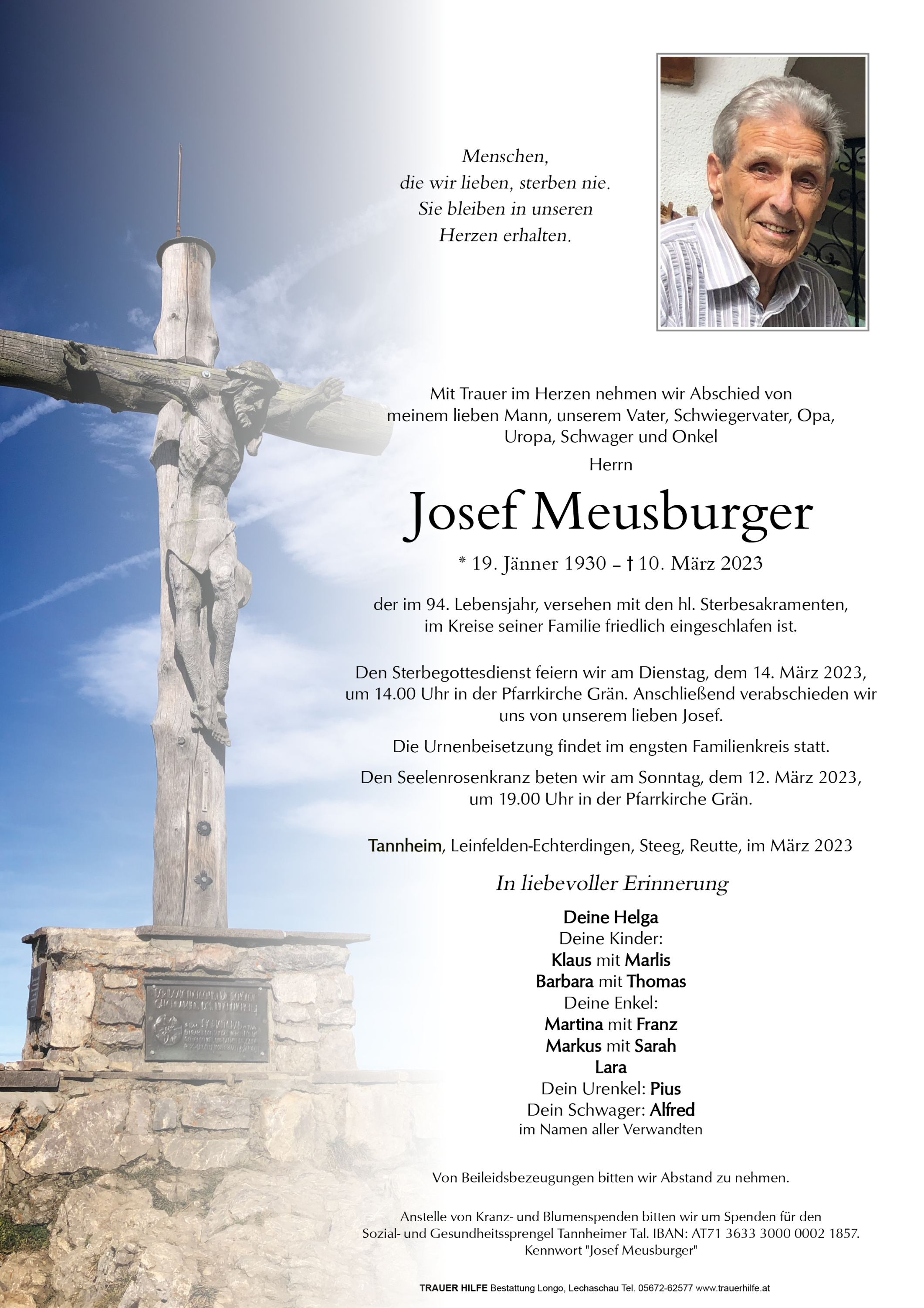 Kondolenzbuch für Josef Meusburger
