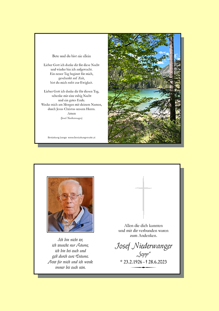 Kondolenzbuch für Josef Niederwanger