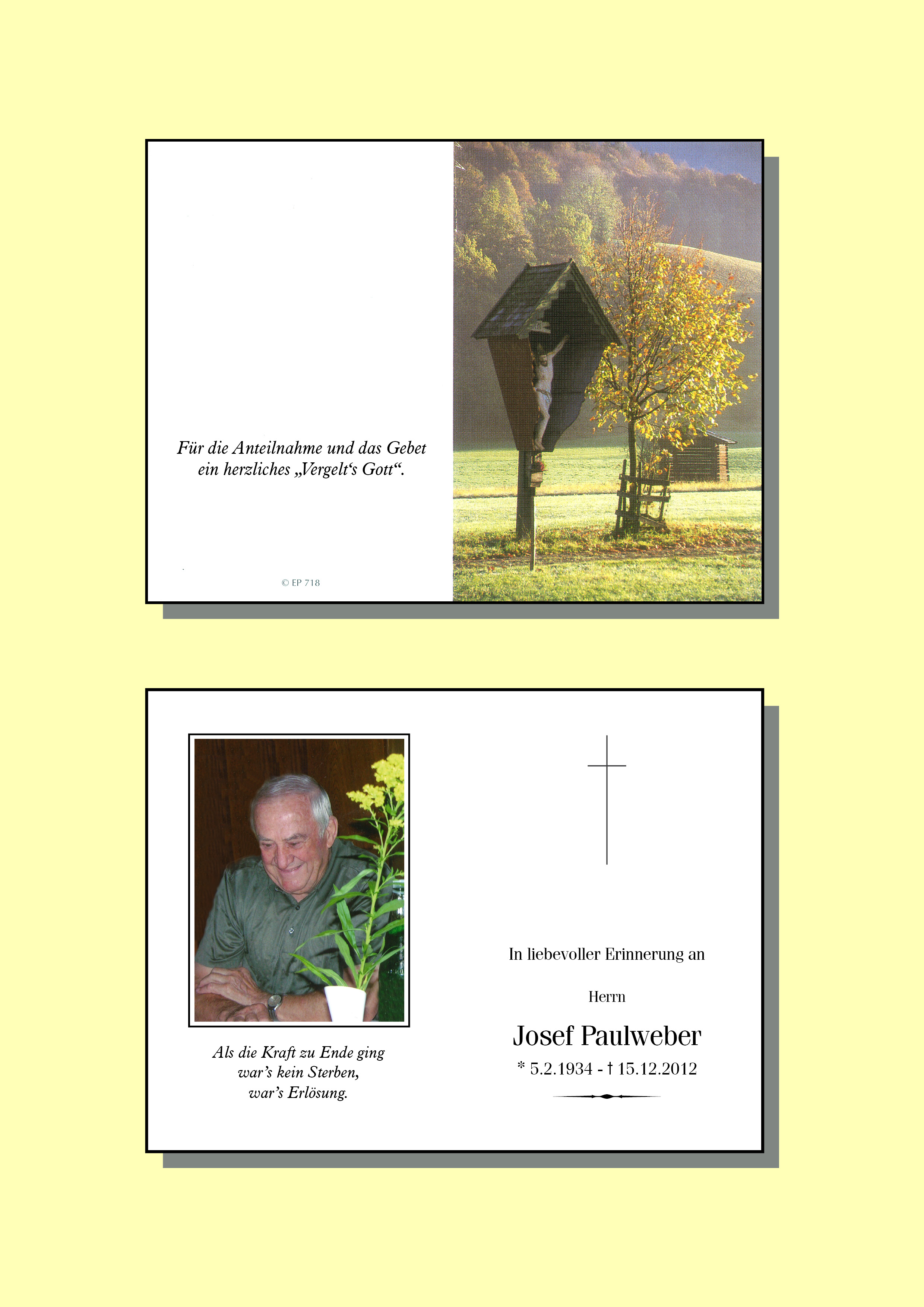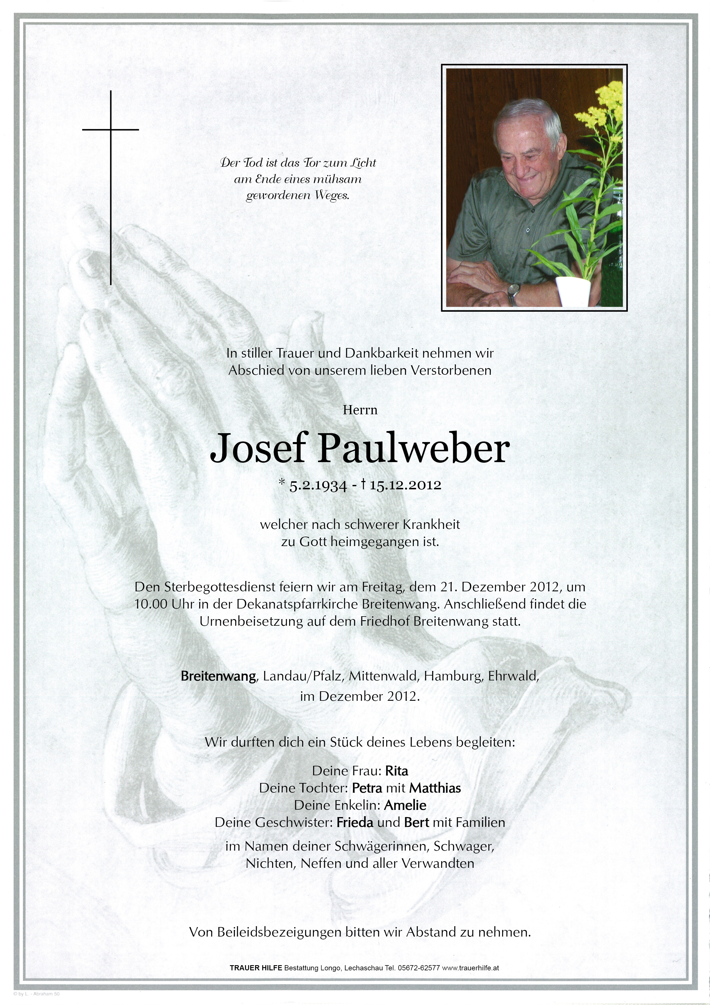 Kondolenzbuch für Josef Paulweber