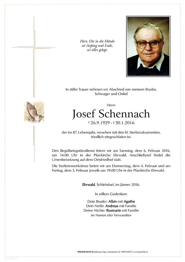 Kondolenzbuch für Josef Schennach