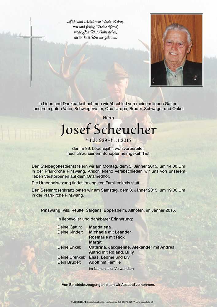 Kondolenzbuch für Josef Scheucher