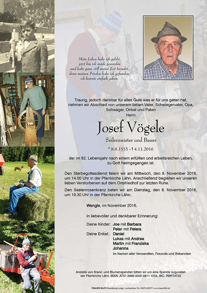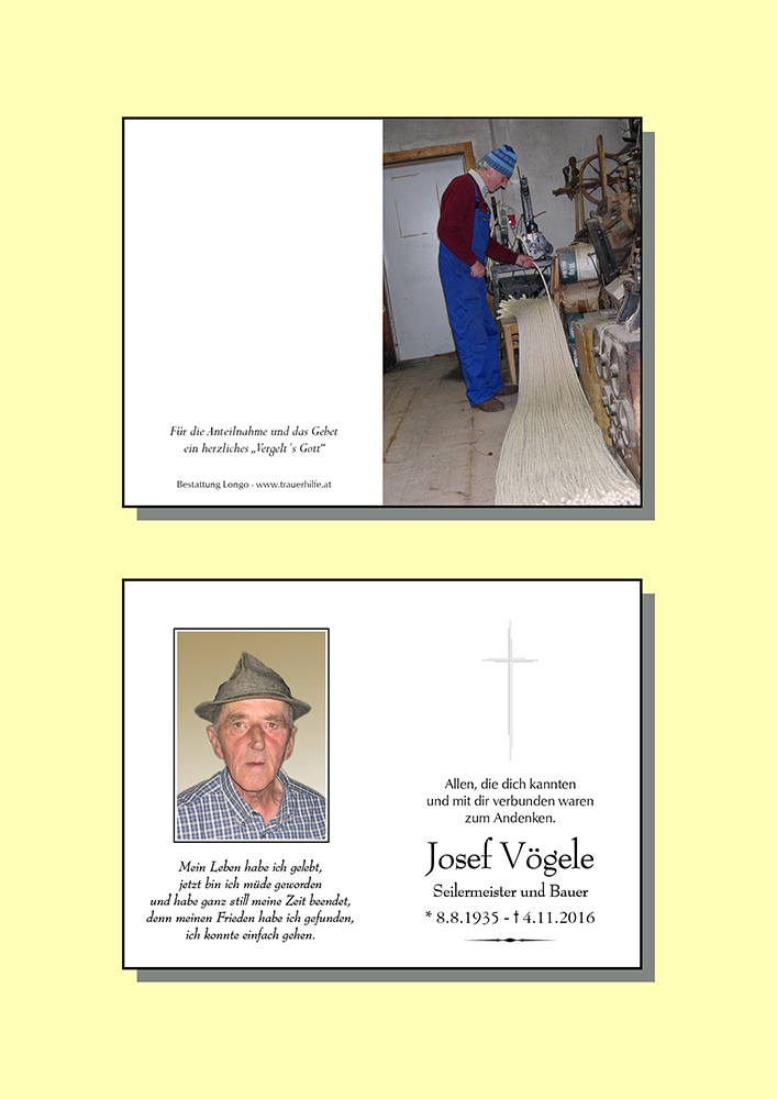 Kondolenzbuch für Josef Vögele