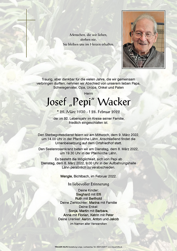 Kondolenzbuch für Josef Wacker