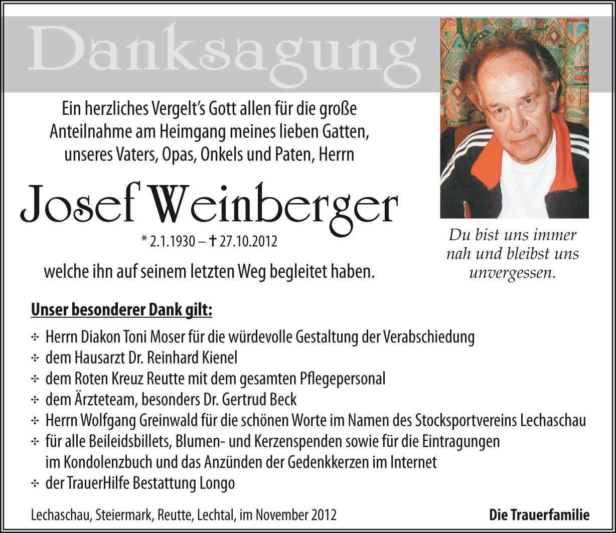 Kondolenzbuch für Josef Weinberger