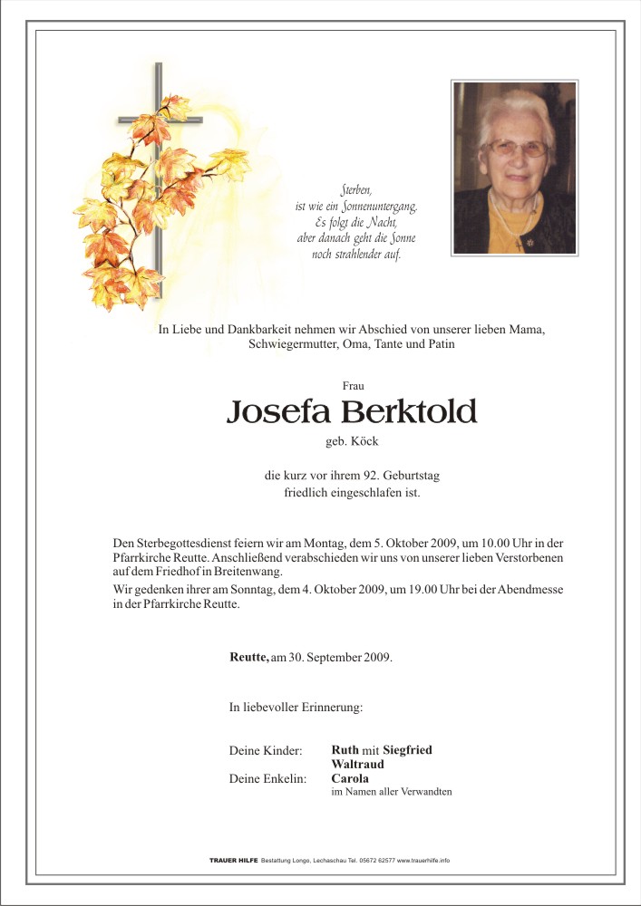 13.12.1901 30.09.2009 Reutte Josefa Berktold Action Parte Gedenkkerzen Kondolenzen Parte Gedenkkerzen Kondolenzen Parte herunterladen Gedenkkerzen für Josefa Berktold 0 Einträge Kerze anzünden Ihre Gedenkkerze fürJosefa Berktold Ihr Name* Farbe auswählen Ihre Nachricht oder Name* E-Mail-Adresse* Mit dem Klicken auf "Kerze anzünden" erklären Sie sich mit unseren Datenschutzbestimmungen einverstanden. Kondolenzbuch für Josefa Berktold 1 Eintrag Kondolenz verfassen Wir sind nur Gast auf Erden und wandern ohne Ruh‘ mit mancherlei Beschwerden der ewigen Heimat zu. Ruhe in Frieden 28.01.2021 um 19:28 Uhr Ihr Abschiedsgruß an Josefa Berktold Ihr Name* E-Mail-Adresse* Ihre Nachricht* Mit dem Klicken auf "Gruß absenden" erklären Sie sich mit unseren Datenschutzbestimmungen einverstanden.