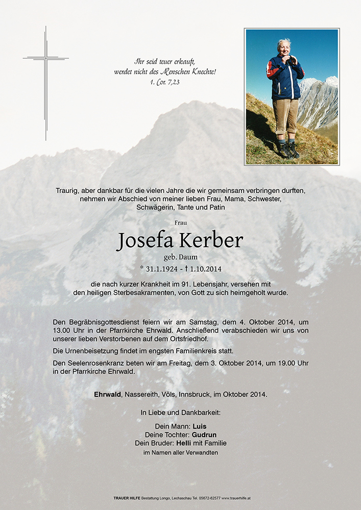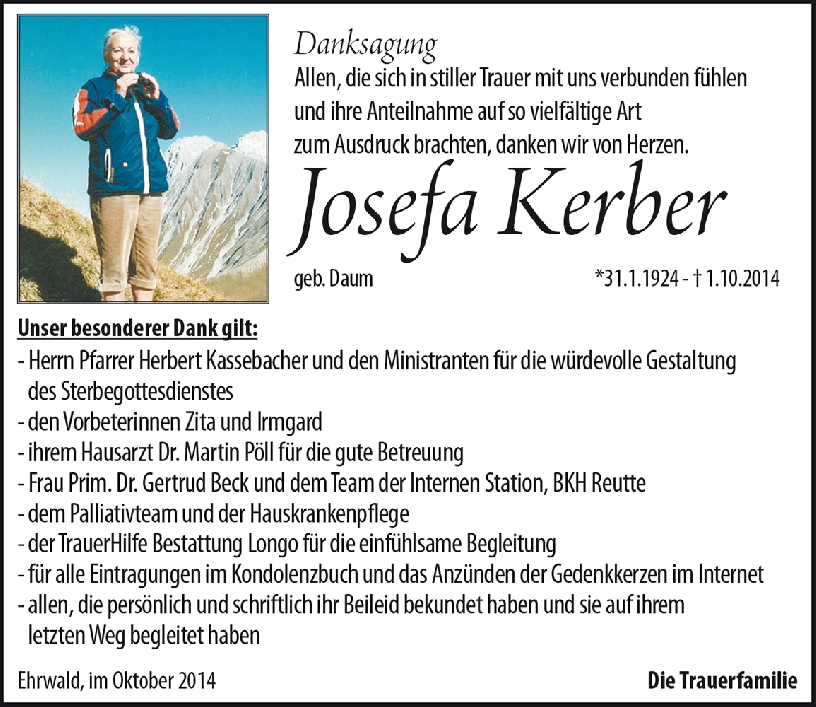 Kondolenzbuch für Josefa Kerber