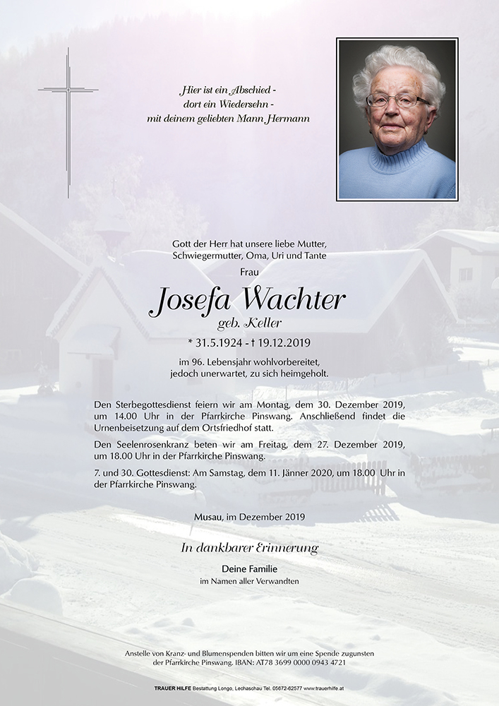Kondolenzbuch für Josefa Wachter