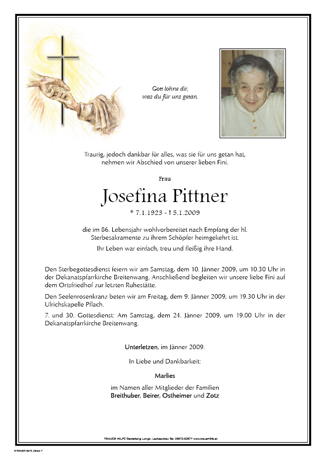 13.12.1901 05.01.2009 Pflach Josefina Pittner Action Parte Gedenkkerzen Kondolenzen Parte Gedenkkerzen Kondolenzen Parte herunterladen Gedenkkerzen für Josefina Pittner 5 Einträge Kerze anzünden Elmar Elmar Beirer Elmar Beirer Elmar Beirer Elmar Beirer Ihre Gedenkkerze fürJosefina Pittner Ihr Name* Farbe auswählen Ihre Nachricht oder Name* E-Mail-Adresse* Mit dem Klicken auf "Kerze anzünden" erklären Sie sich mit unseren Datenschutzbestimmungen einverstanden. Kondolenzbuch für Josefina Pittner 0 Einträge Kondolenz verfassen Ihr Abschiedsgruß an Josefina Pittner Ihr Name* E-Mail-Adresse* Ihre Nachricht* Mit dem Klicken auf "Gruß absenden" erklären Sie sich mit unseren Datenschutzbestimmungen einverstanden.
