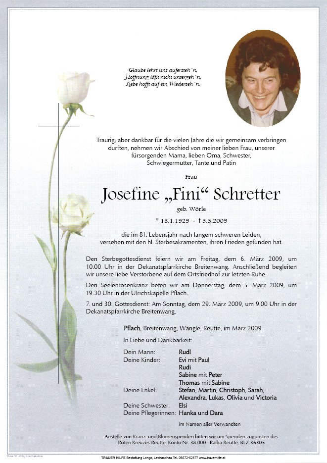 13.12.1901 03.03.2009 Pflach Josefine Schretter Action Parte Gedenkkerzen Kondolenzen Parte Gedenkkerzen Kondolenzen Parte herunterladen Gedenkkerzen für Josefine Schretter 0 Einträge Kerze anzünden Ihre Gedenkkerze fürJosefine Schretter Ihr Name* Farbe auswählen Ihre Nachricht oder Name* E-Mail-Adresse* Mit dem Klicken auf "Kerze anzünden" erklären Sie sich mit unseren Datenschutzbestimmungen einverstanden. Kondolenzbuch für Josefine Schretter 0 Einträge Kondolenz verfassen Ihr Abschiedsgruß an Josefine Schretter Ihr Name* E-Mail-Adresse* Ihre Nachricht* Mit dem Klicken auf "Gruß absenden" erklären Sie sich mit unseren Datenschutzbestimmungen einverstanden.