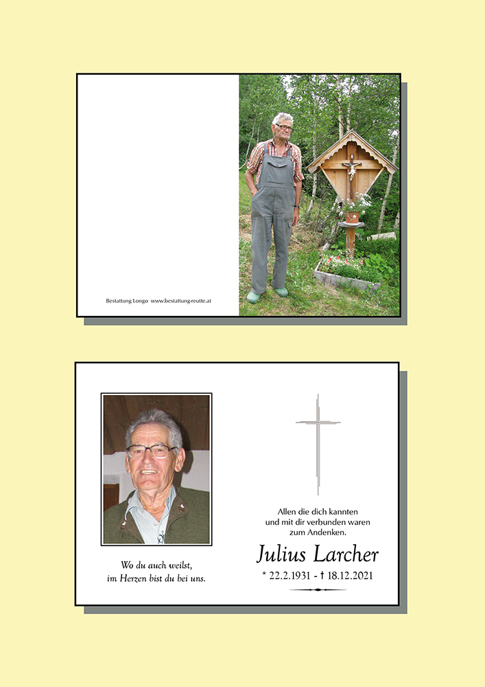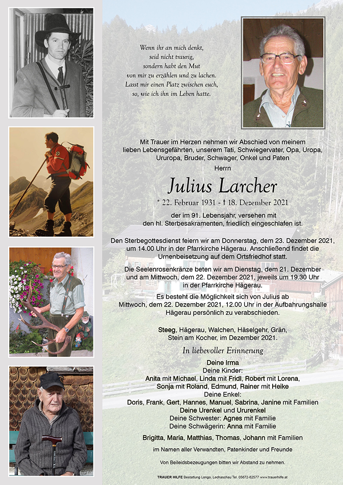 Unser aufrichtiges , herzliches Beileid der Trauerfamilie . Pfiati Julius, moch dirâs fei do doba