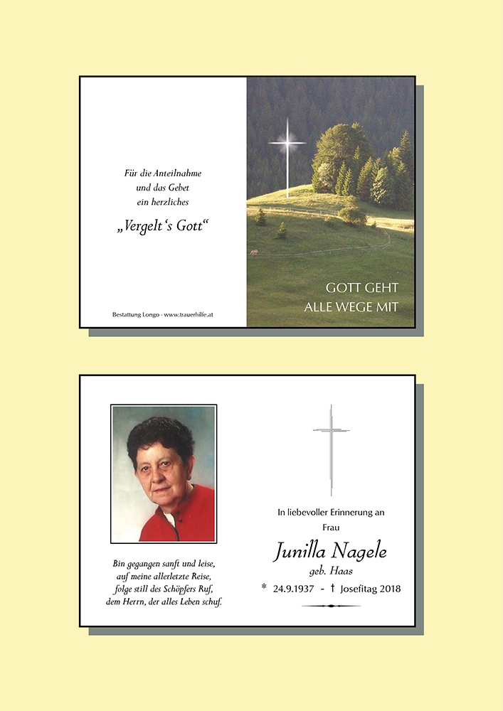 Ich gehe Euch voraus in den ewigen Frieden des Herrn und erwarte Euch zum ewigen Wiedersehn.