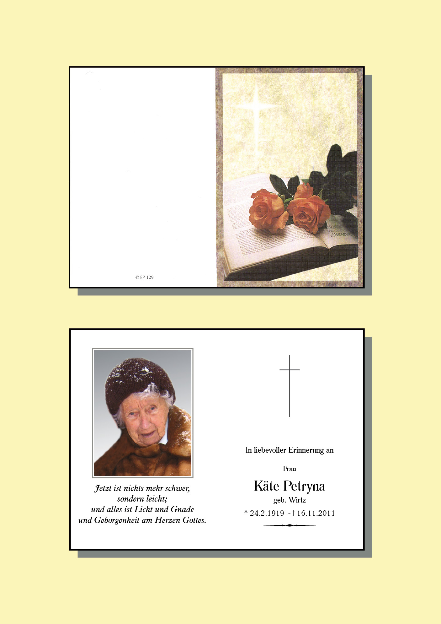 Kondolenzbuch für Käte Petryna