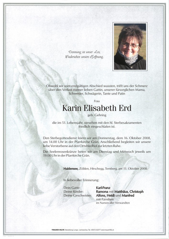 13.12.1901 13.10.2008 Haldensee Karin Elisabeth Erd Action Parte Gedenkkerzen Kondolenzen Parte Gedenkkerzen Kondolenzen Parte herunterladen Gedenkkerzen für Karin Elisabeth Erd 5 Einträge Kerze anzünden Willi u. Andrea Schädle Ruhe in Frieden Hans & Elisabeth Praschberger Hans Praschberger Ein Licht für deinen Weg Karin Ihre Gedenkkerze fürKarin Elisabeth Erd Ihr Name* Farbe auswählen Ihre Nachricht oder Name* E-Mail-Adresse* Mit dem Klicken auf "Kerze anzünden" erklären Sie sich mit unseren Datenschutzbestimmungen einverstanden. Kondolenzbuch für Karin Elisabeth Erd 0 Einträge Kondolenz verfassen Ihr Abschiedsgruß an Karin Elisabeth Erd Ihr Name* E-Mail-Adresse* Ihre Nachricht* Mit dem Klicken auf "Gruß absenden" erklären Sie sich mit unseren Datenschutzbestimmungen einverstanden.