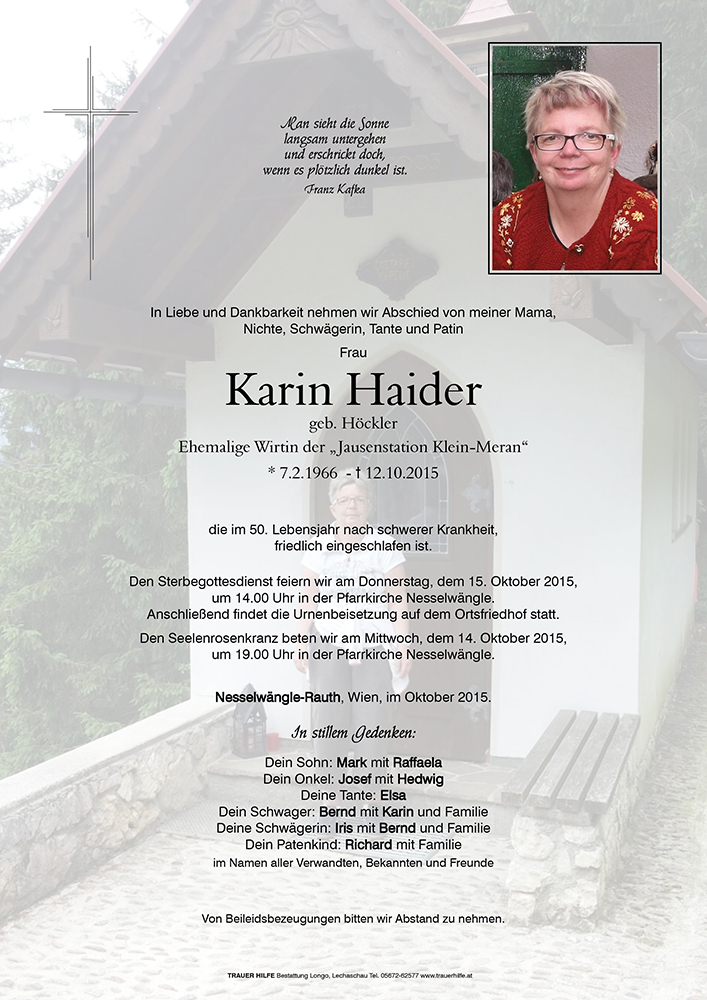 Kondolenzbuch für Karin Haider