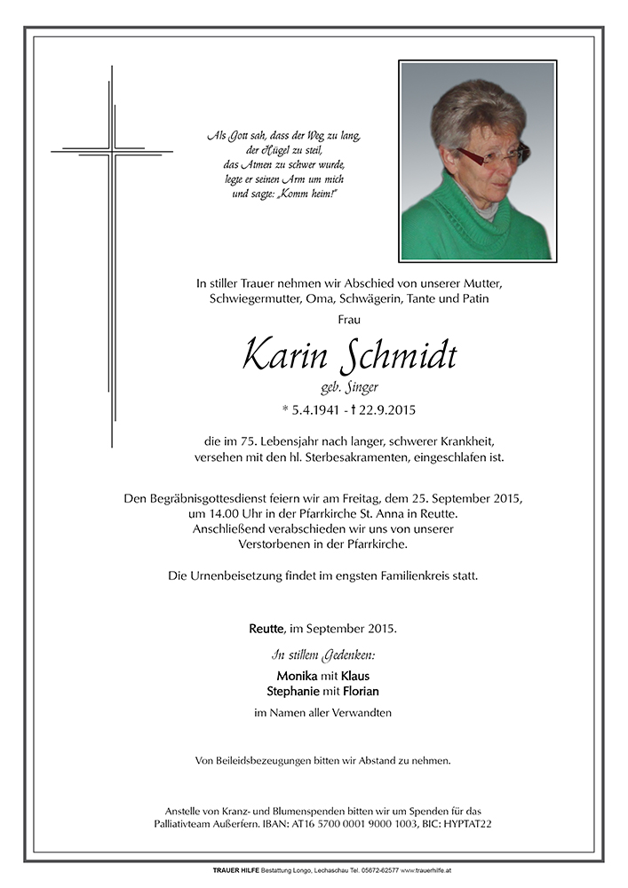 Kondolenzbuch für Karin Schmidt