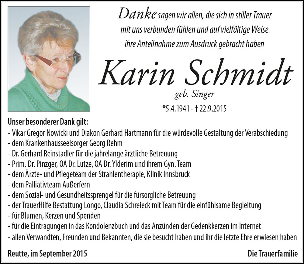 Zum Tode von Karin entbieten wir unsere aufrichtige, von Herzen kommende Anteilnahme!