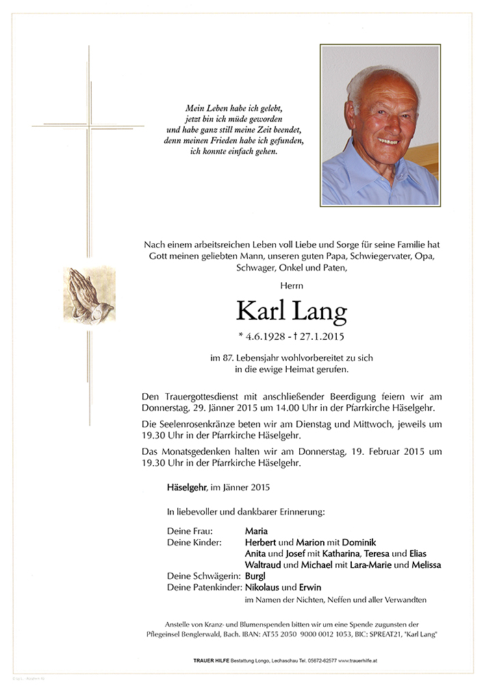 Kondolenzbuch für Karl Lang