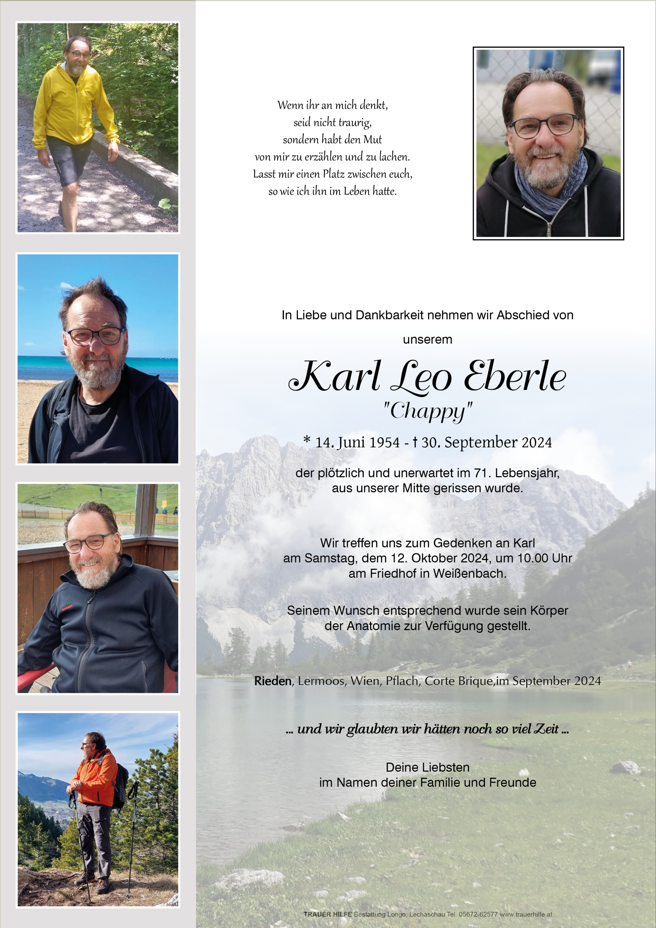 Es hat mich richitg geschockt als ich erfahren habe das Karl seine letzte Reise angetreten hat. Er war ein Charakterstarker Mensch und Freund, absolut zuverlässig und Ehrlich. Ich bin froh ihn kennengelernt zu haben.