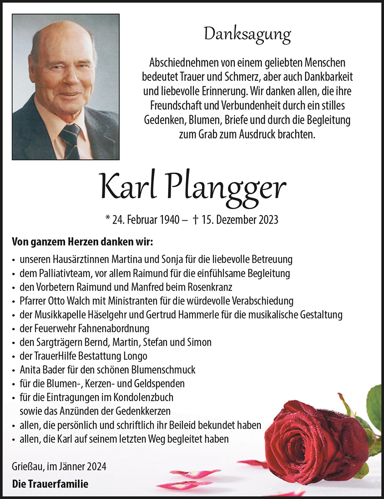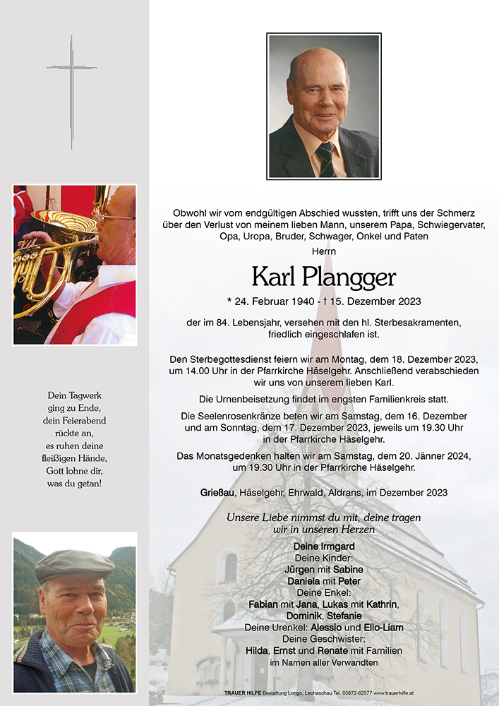 Kondolenzbuch für Karl Plangger