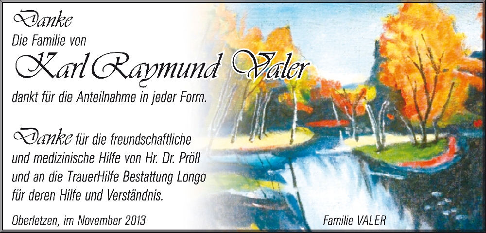 Kondolenzbuch für Karl Raymund Valer