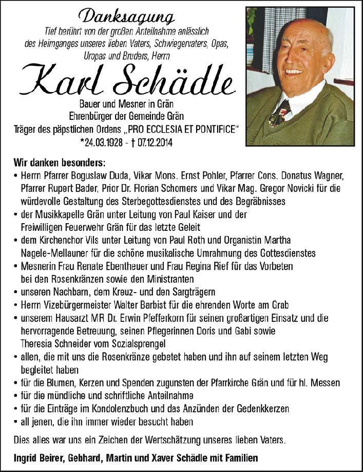 Und da haben wir keine Bedenken, dass eurer Papa, Opa und Uropa in diesem Sinne weiterlebt.