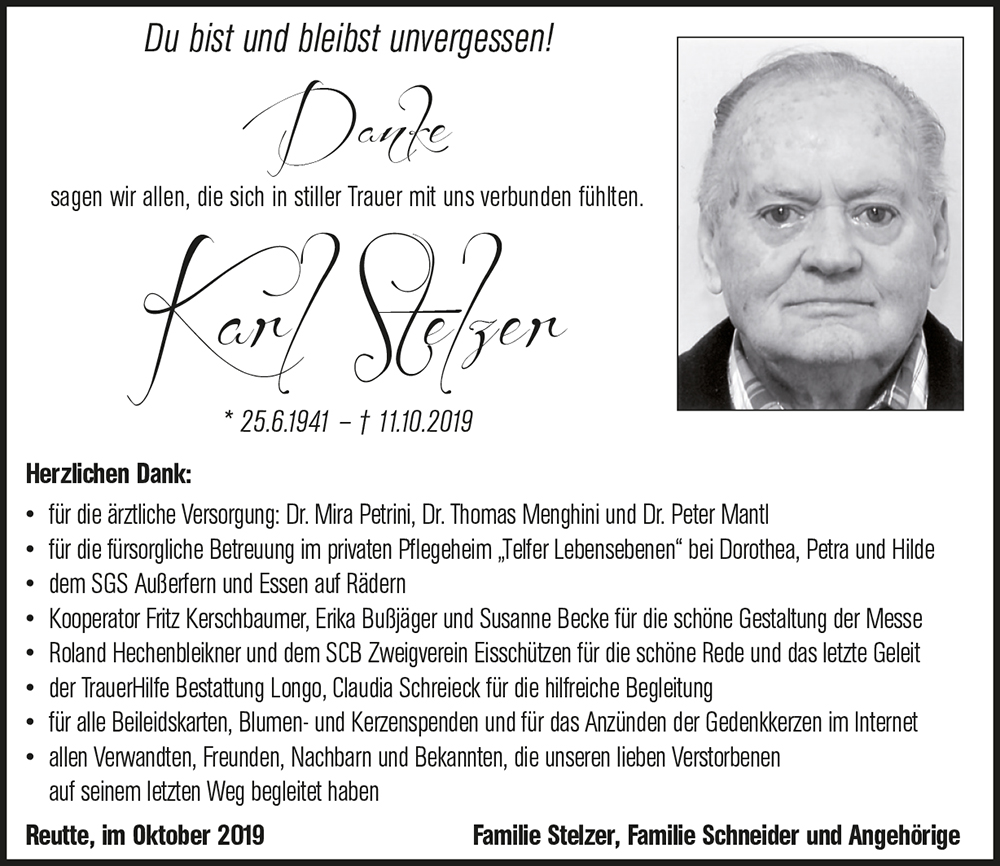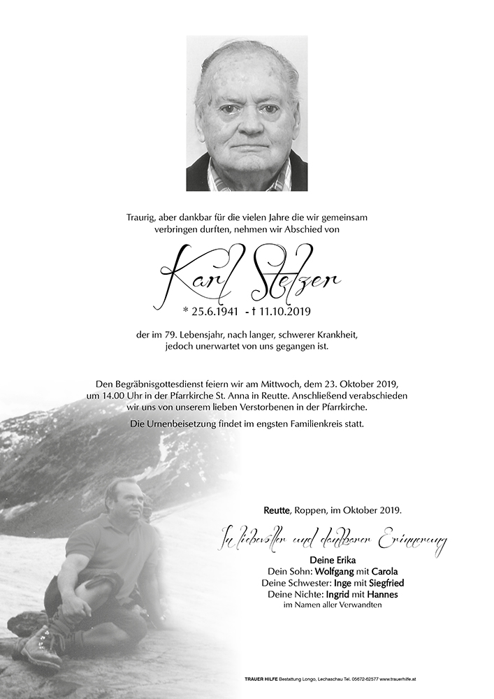 Kondolenzbuch für Karl Stelzer