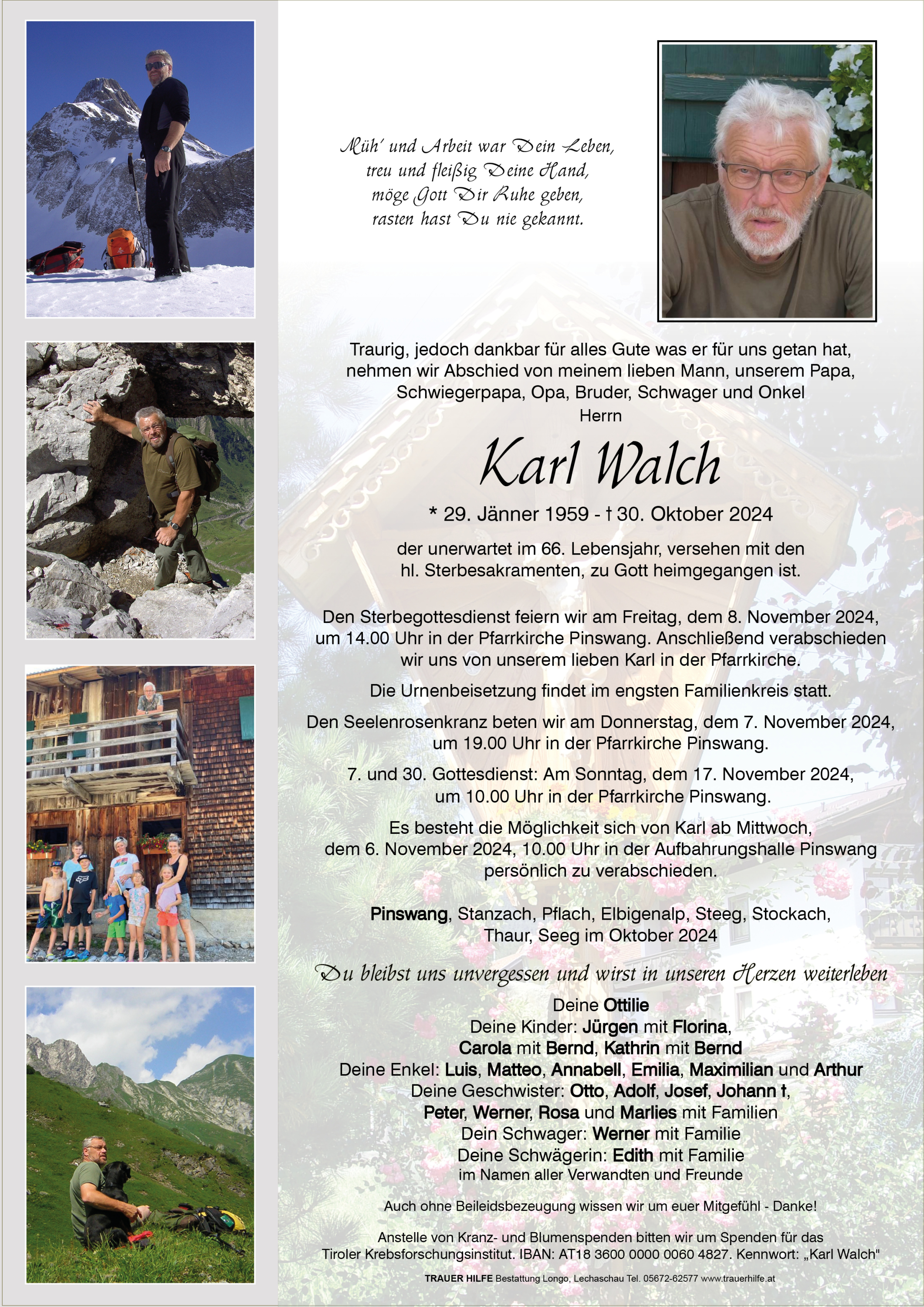 Lieber Karl, ich werde dich immer als sehr guten Feuerwehrkamerd schätzen und in Erinnerung behalten. Pfiati Karl, pass guat auf deine Lieben auf .