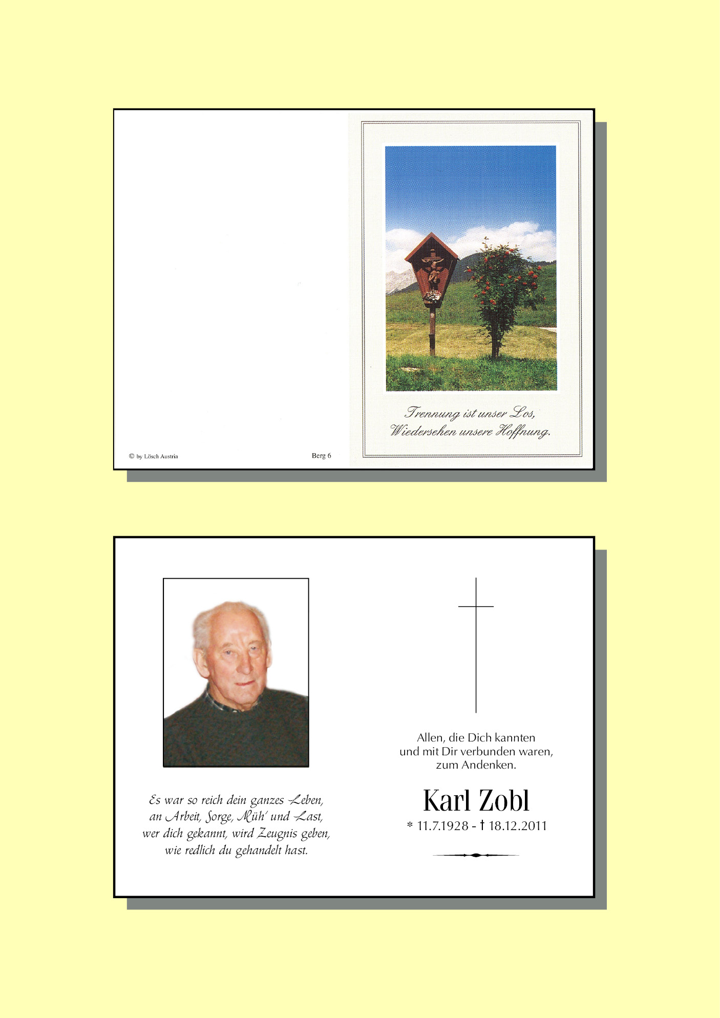 Kondolenzbuch fĂŒr Karl Zobl