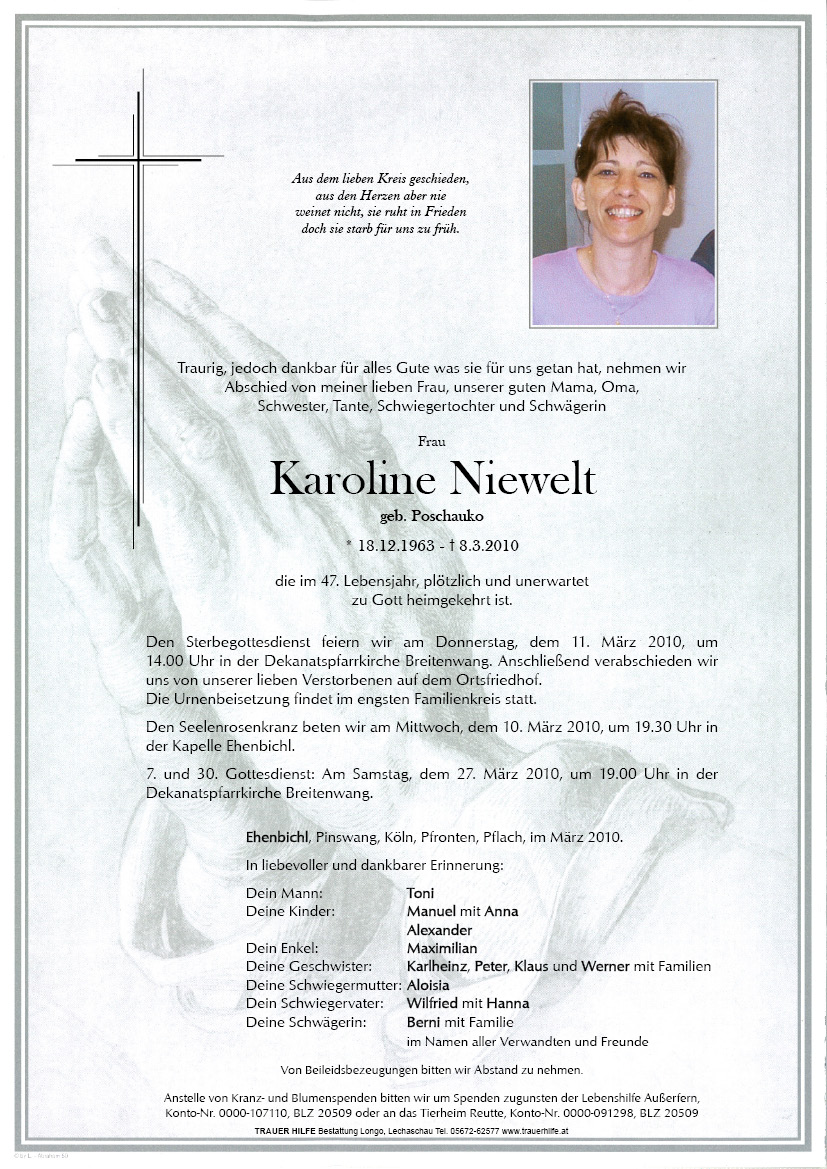 Zum Jahrtag lb. Karoline, i denk an di, Ulli