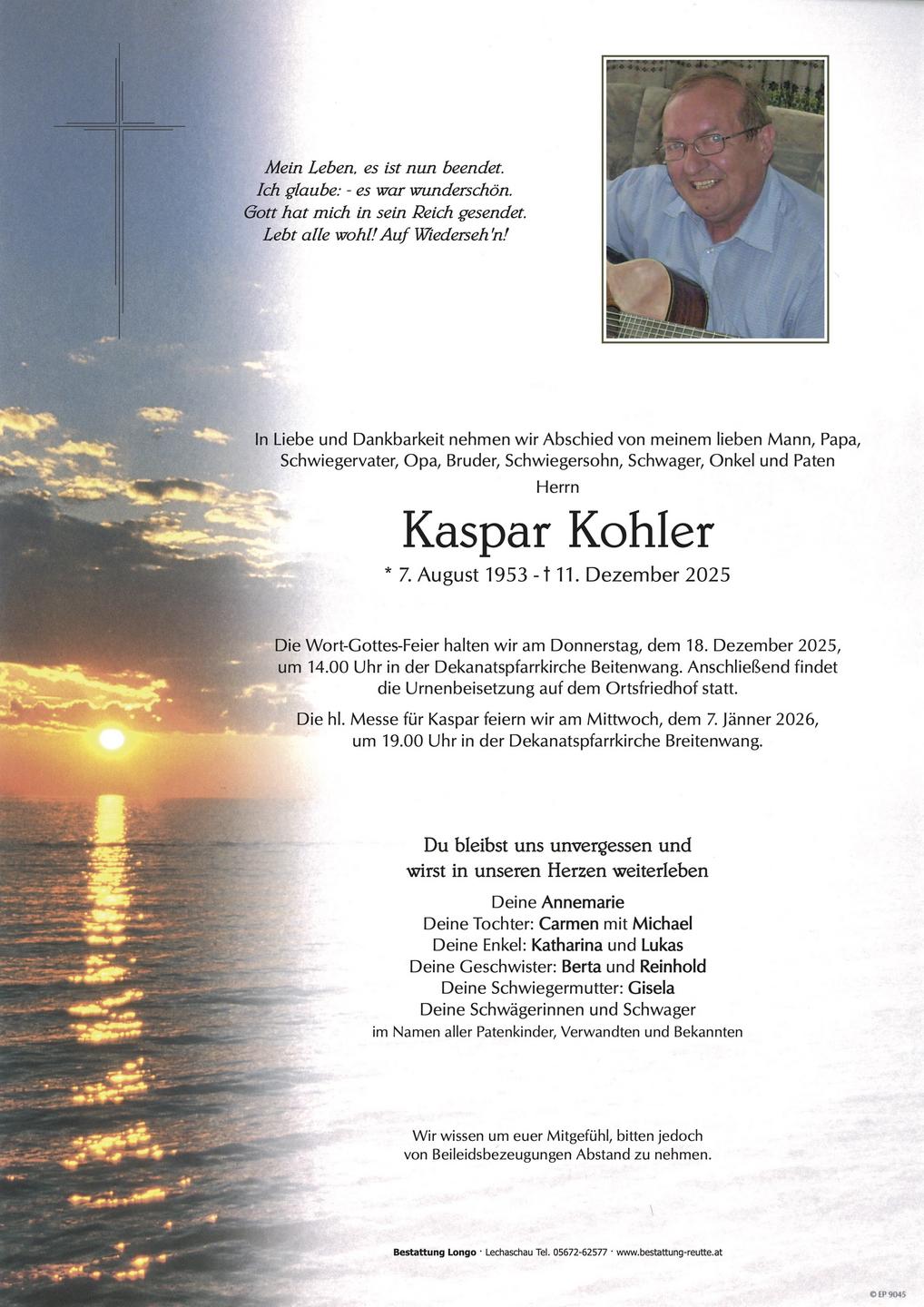 Kaspar , Ruhe in Frieden !! Dein Bruderherz Reinhold mit Brigitte.