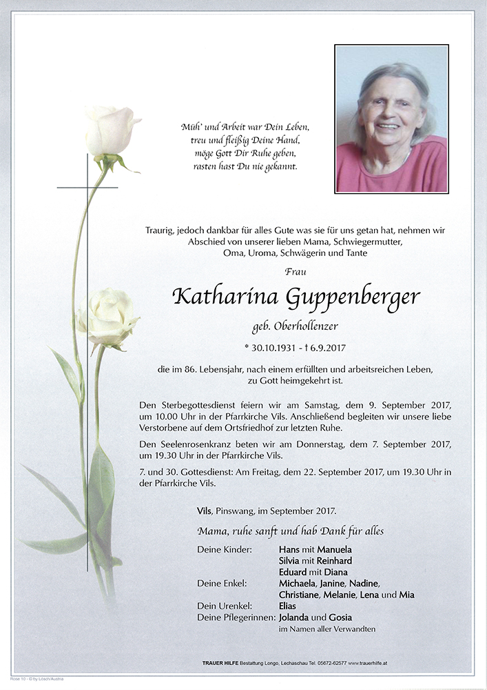 Kondolenzbuch für Katharina Guppenberger