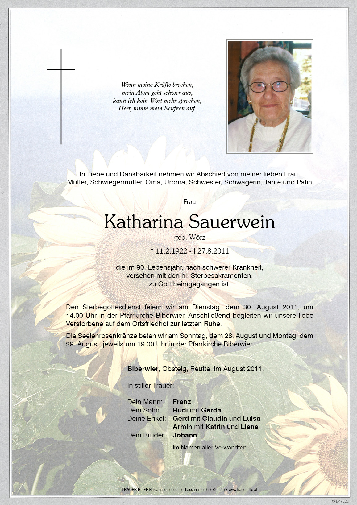 13.12.1901 27.08.2011 Biberwier Katharina Sauerwein Action Parte Sterbebild Gedenkkerzen Kondolenzen Danksagung Parte Sterbebild Gedenkkerzen Kondolenzen Danksagung Parte herunterladen Sterbebild herunterladen Gedenkkerzen für Katharina Sauerwein 11 Einträge Kerze anzünden Elke, Harald, Martin und Robin Elke Elke, Harald, Martin und Robin Elke, Harald, Martin und Robin Elke, Harald, Martin und Robin Hosp Josef Elke, Harald, Martin und Robin Elke, Harald, Martin und Robin hosp josef hosp josef Fam. Werner u. Heidi Hohenegg Ihre Gedenkkerze fürKatharina Sauerwein Ihr Name* Farbe auswählen Ihre Nachricht oder Name* E-Mail-Adresse* Mit dem Klicken auf "Kerze anzünden" erklären Sie sich mit unseren Datenschutzbestimmungen einverstanden. Kondolenzbuch für Katharina Sauerwein 0 Einträge Kondolenz verfassen Ihr Abschiedsgruß an Katharina Sauerwein Ihr Name* E-Mail-Adresse* Ihre Nachricht* Mit dem Klicken auf "Gruß absenden" erklären Sie sich mit unseren Datenschutzbestimmungen einverstanden. Danksagung herunterladen