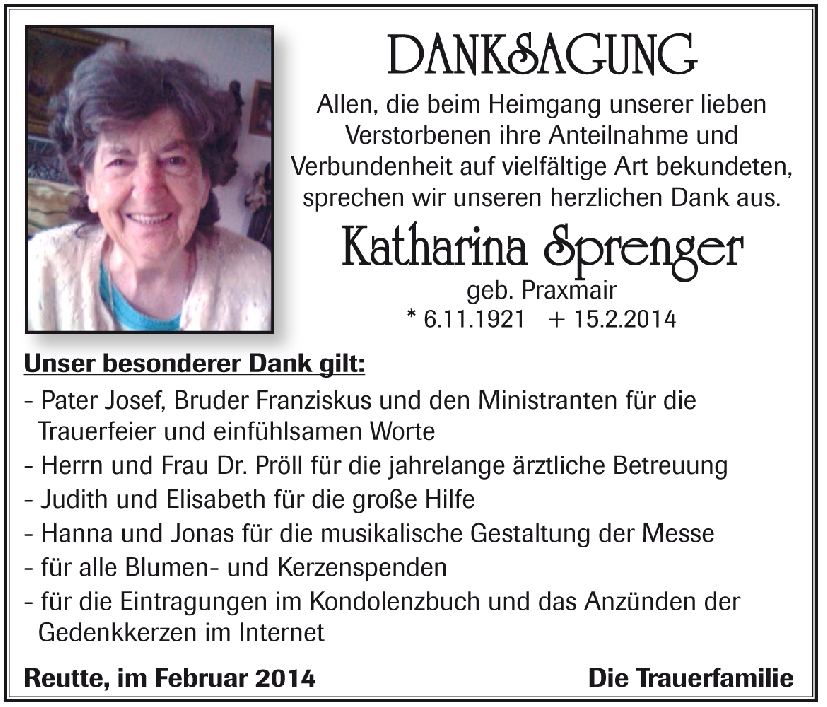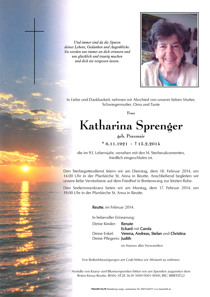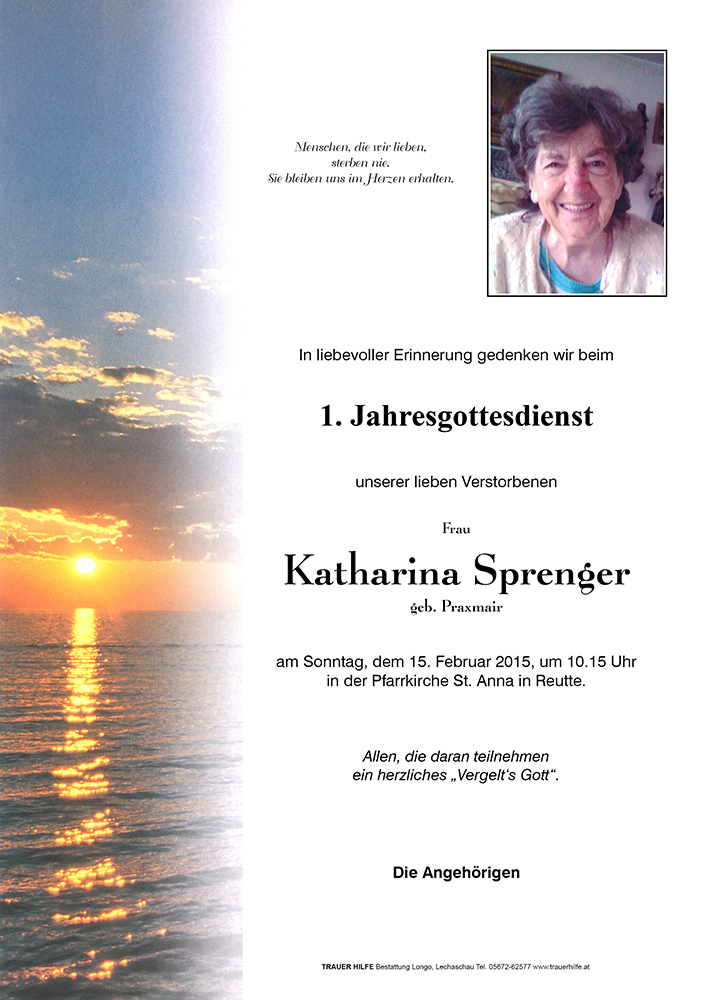 Kondolenzbuch für Katharina Sprenger