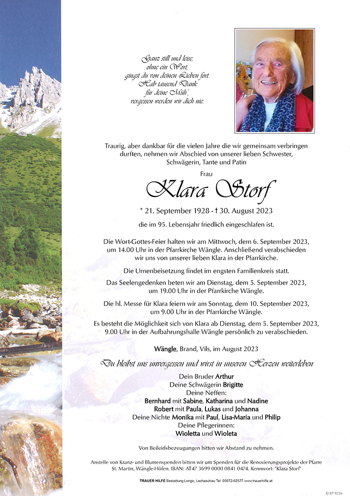 Lieber Namenskollege Arthur! Ich möchte Dir mein aufrichtiges Beileid für den Heimgang Deiner Schwester Klara ausdrücken! Geb Ihr Gott die ewige Ruhe und ewigen Frieden! In Verbundenheit - Artur mit Familie