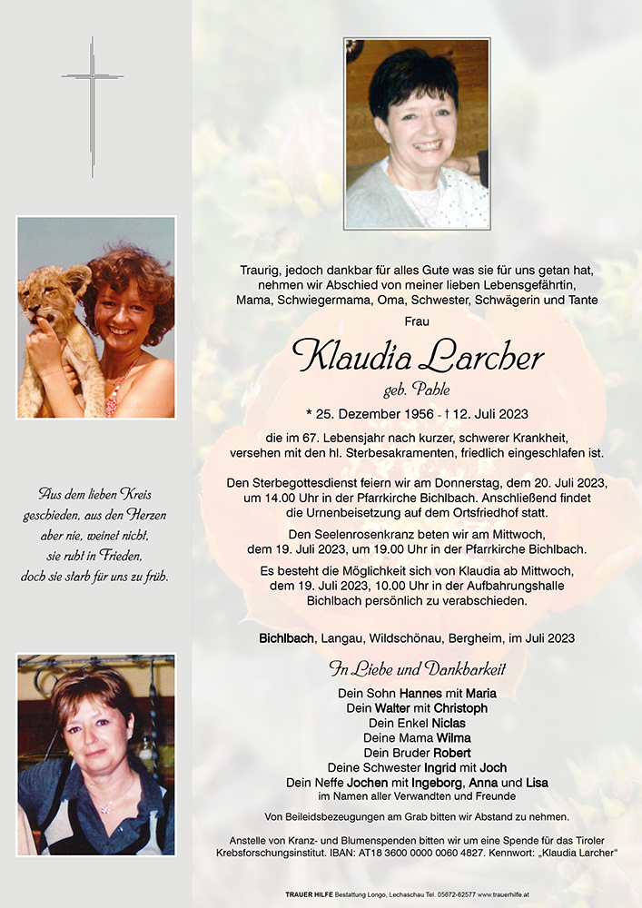 Unser Beileid für alle Hinterbliebenen. Du warst immer nett und lustig hattest immer ein Lächeln auch wenn es noch so viel Arbeit gegeben hatte. Schade dass du deine Pension nicht in deinem geliebten Tirol verbringen konntest.