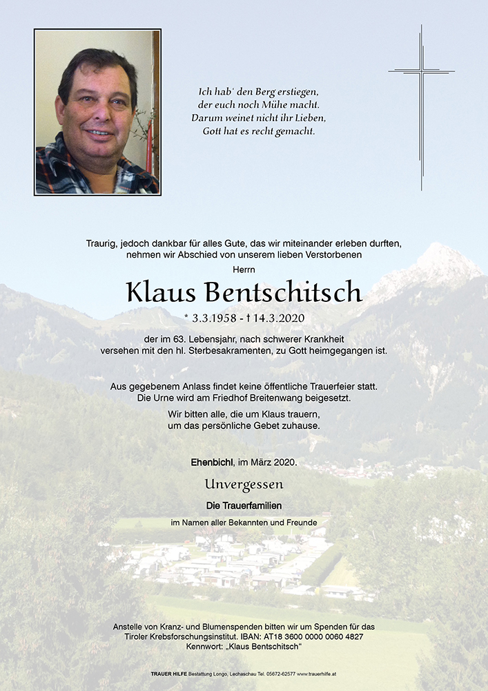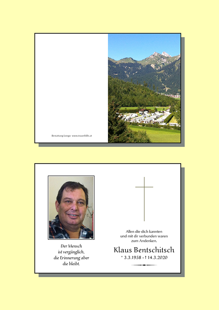 Liebe Elisabeth mit Franz, werte Trauerfamilie, zum Tod eures lieben verstorben Klaus möchten wir unser mitfühlen zum Ausdruck bringen. Es ist immer zu früh, wenn wir Abschied nehmen müssen. In herzlichem Mitgefühl verbunden KARL und Reinhilde