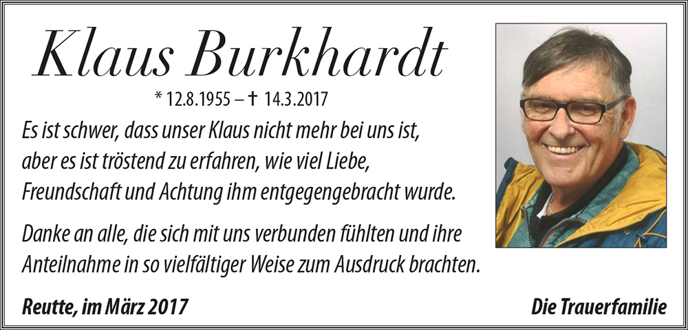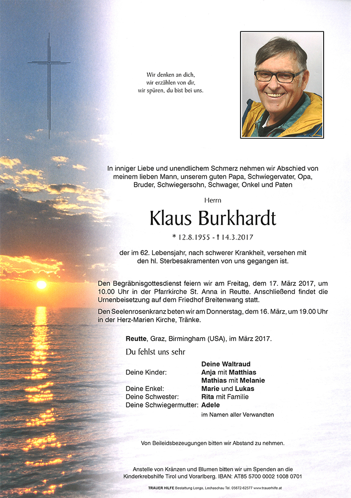Tief berührt möchte ich euch mein Beileid zum Ableben von Klaus ausdrücken.