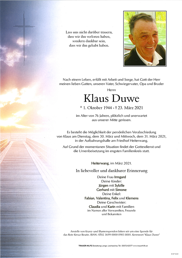 Zum Tode von Klaus entbiete ich euch meine tiefe Anteilnahme.