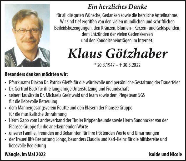 Kondolenzbuch für Klaus Götzhaber