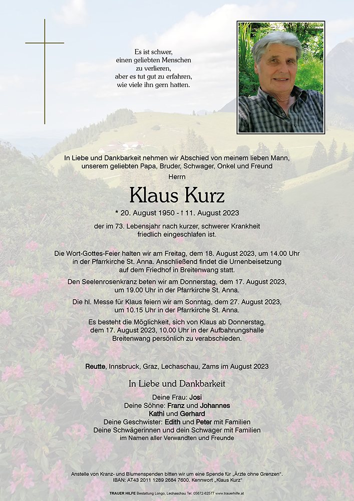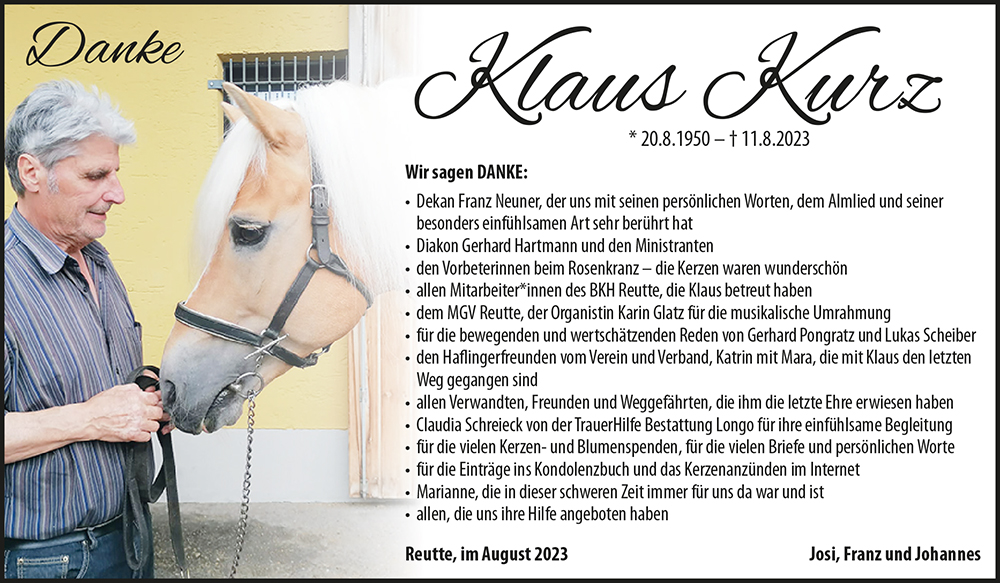 Kondolenzbuch für Klaus Kurz
