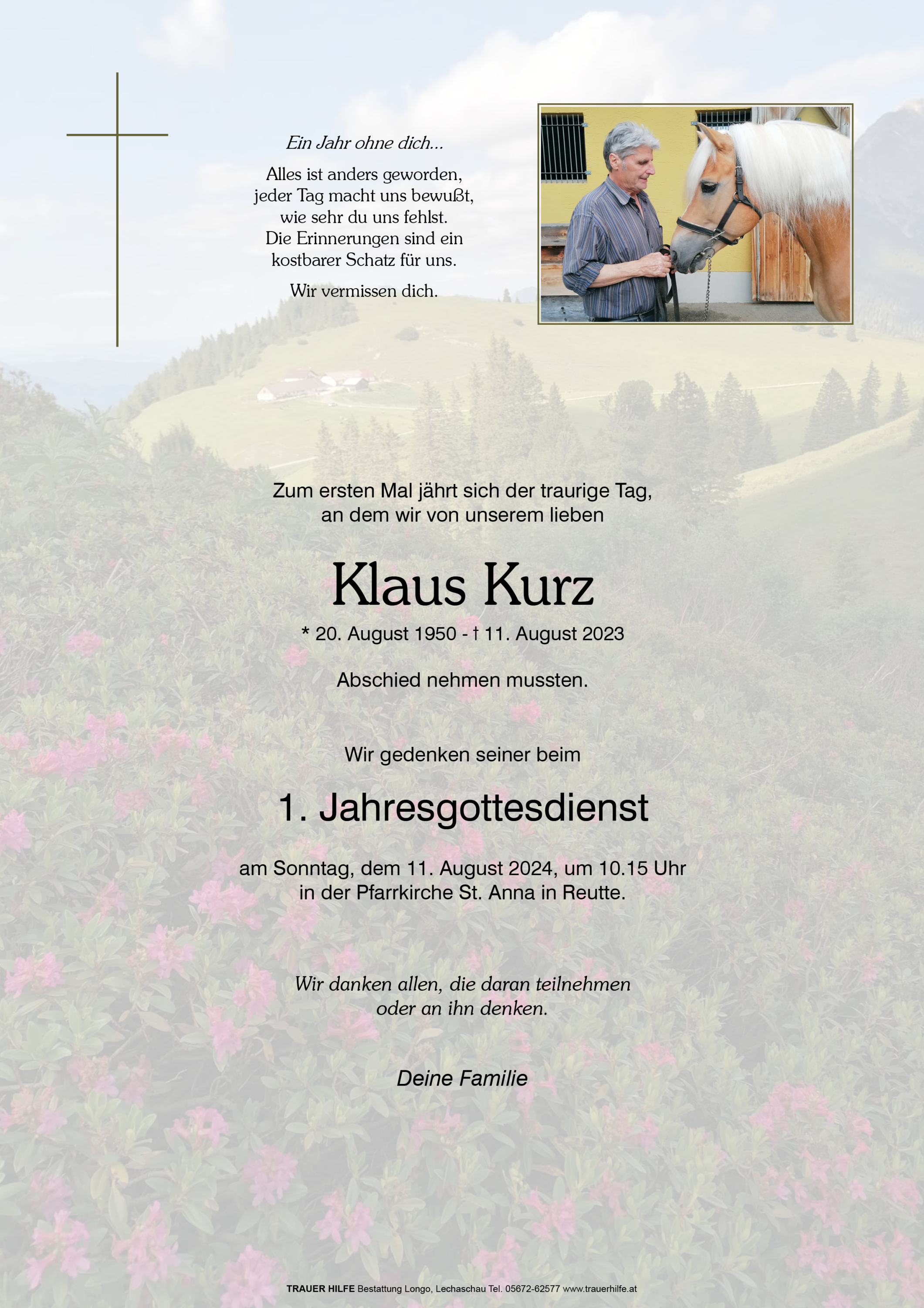 Wir vom Haflingerpferdezuchtverein Reutte sprechen der gesamten Trauerfamilie unsere aufrichtige Anteilnahme aus.