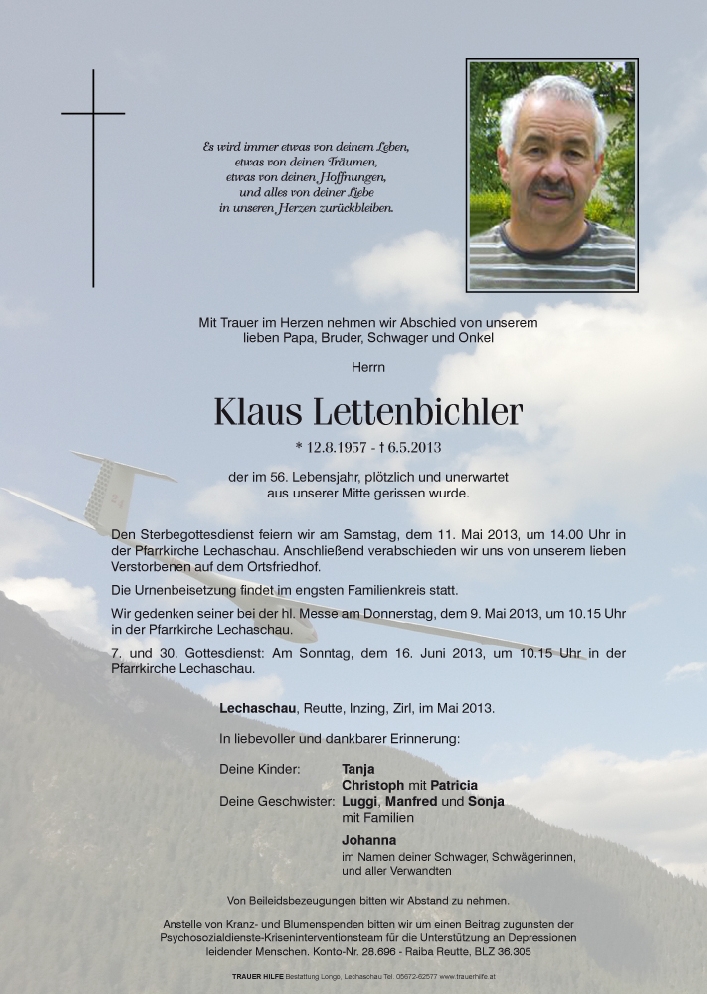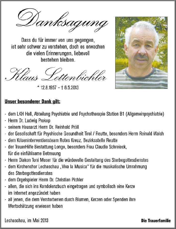 Kondolenzbuch für Klaus Lettenbichler