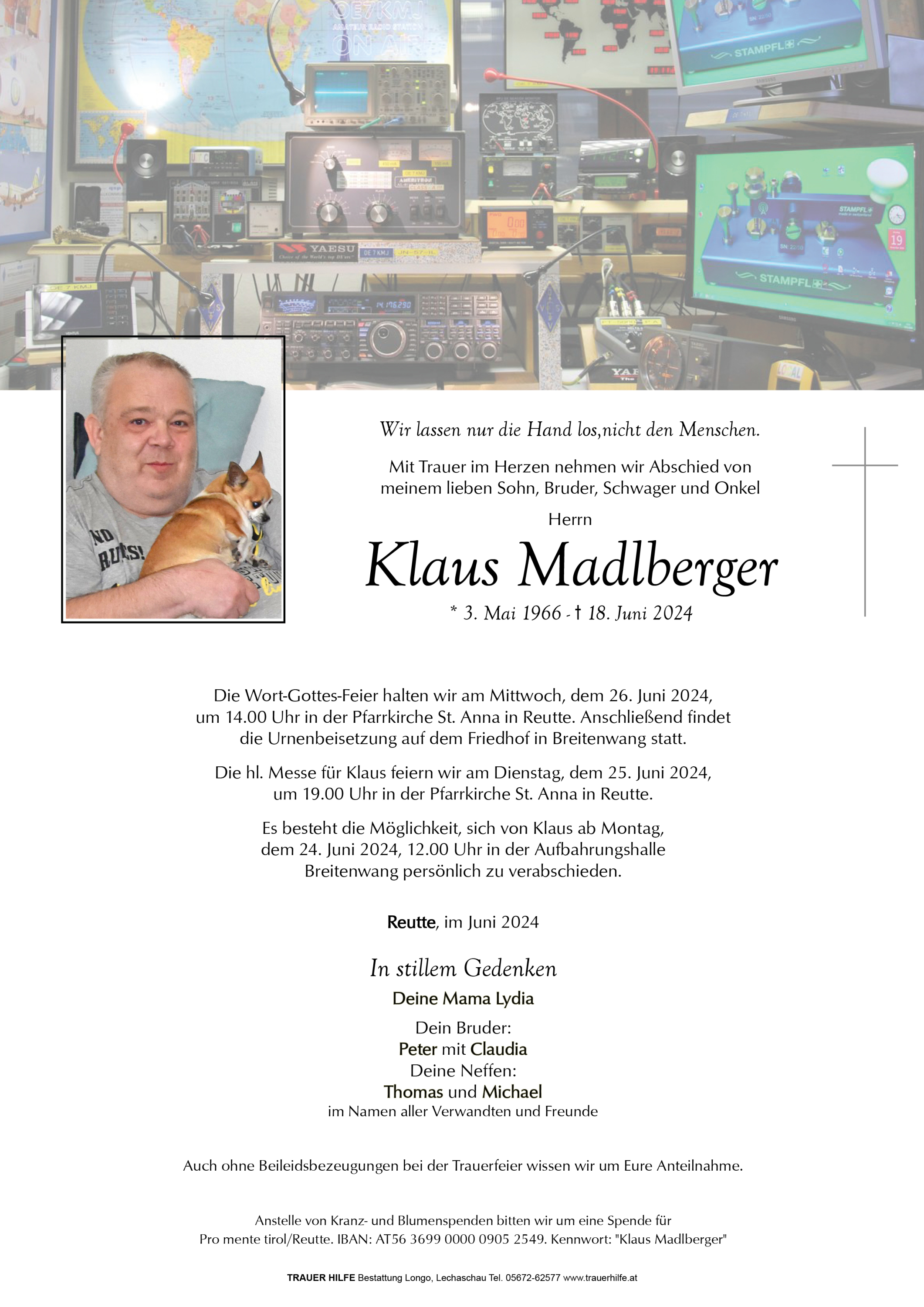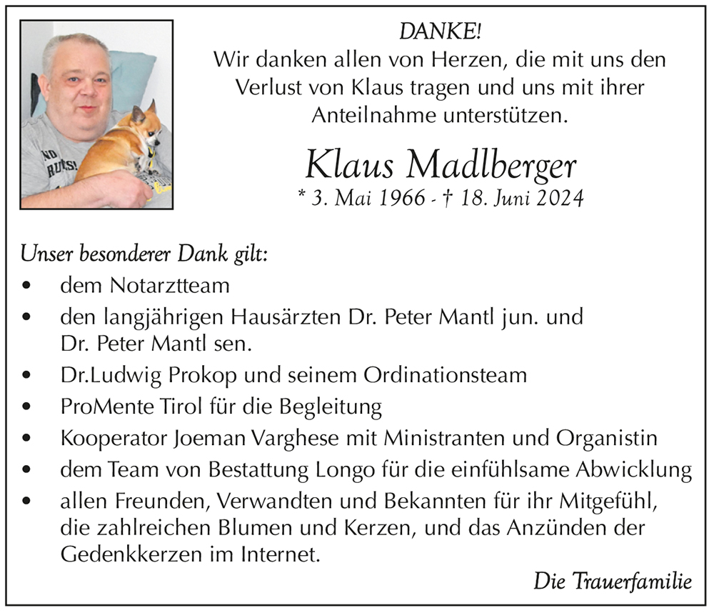 Welch traurige Nachricht musste ich heute in der Zeitung lesen. Sofort kam mir ein Bild von KLaus mit dir Peter in Erinnerung, das sich mir bis heute eingeprägt hat. Sehr oft, wenn ich am Morgen zur Schule ins Gym ging, saßen bereits um halb acht in der Früh zwei spielende Blondschöpfe vor dem Laden auf dem Boden. Jedes Mal dachte ich mir im Vorbeigehen, was sind das doch für nette Buben. Lydia, ich kann mir vorstellen, wie schwer es für dich sein muss, deinen Bub vor dir gehen zu lassen.